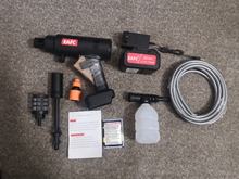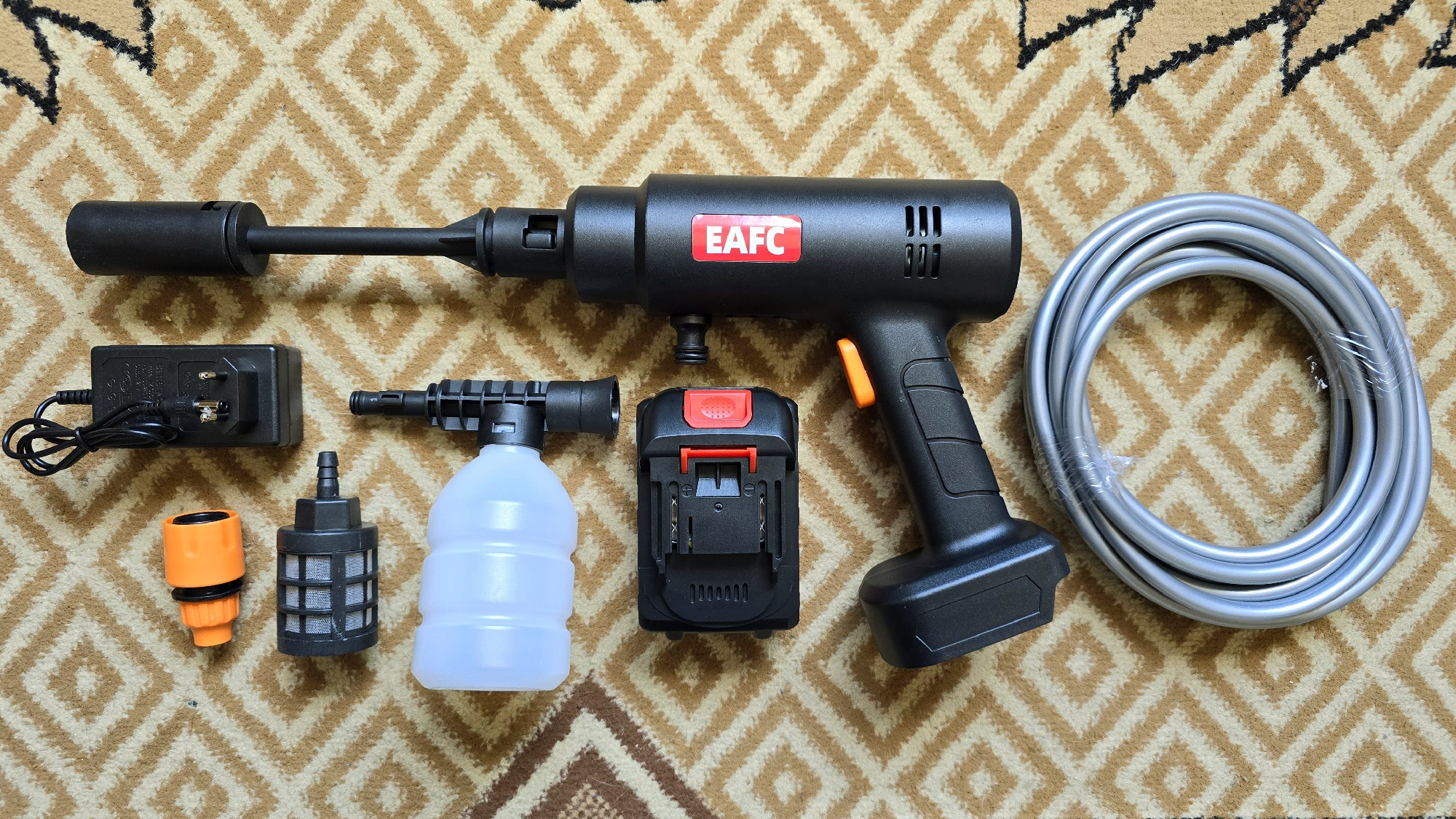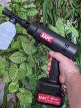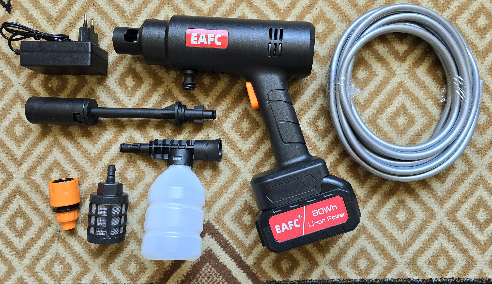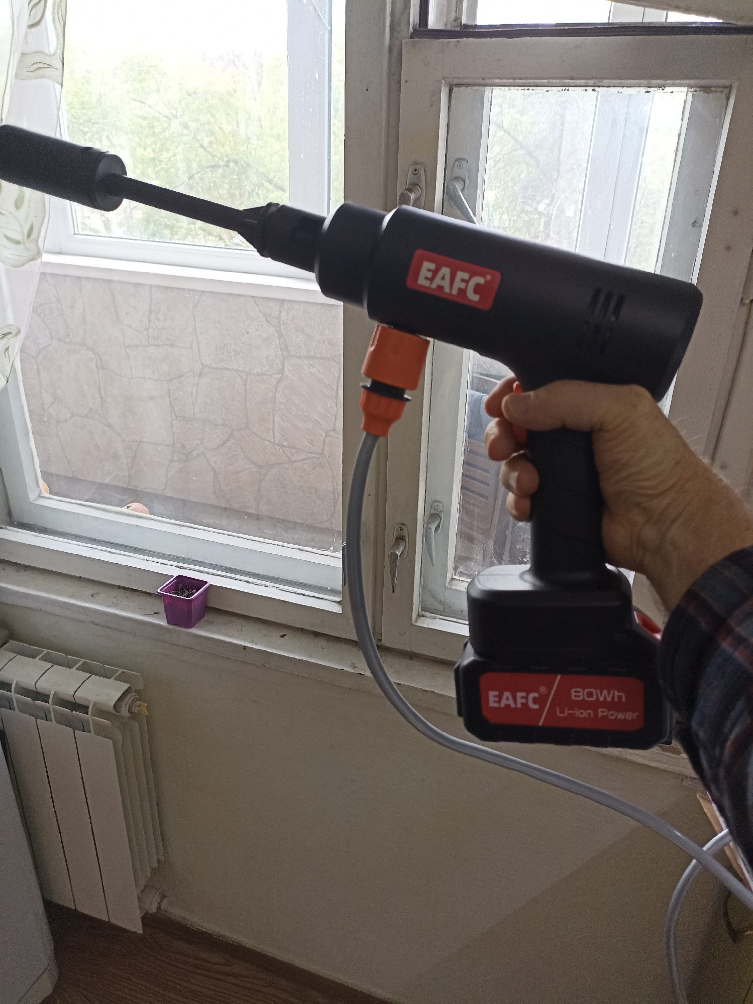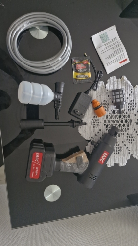 The parcel arrived in time. Collected, tried at home in the bathroom. While the new one works well, the pressure, the hand hurts, adjustable in a wide range. To know how long it will last. There are two minuses, but they are not serious. The switch button is very light, if you accidentally touch it, it doused the whole bath with water. It's very easy. And yet, the hose is good, but during transportation it was transferred in several places, and warmed, and crumpled, squirmed, but did not fully straighten it. Maybe it will get better over time? The battery fits any tool that pleases. I didn't check the capacity, but it works well. So far satisfied, and the price is not great. You can take.