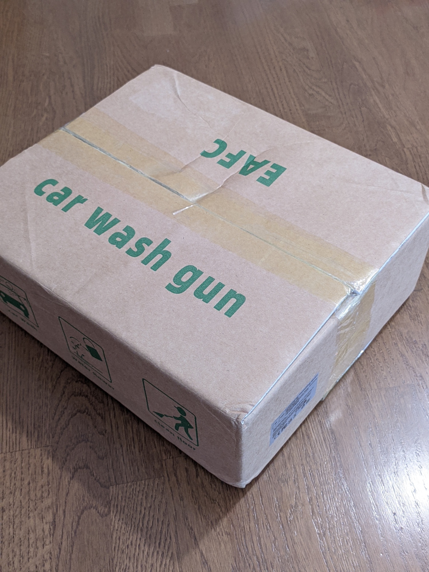 Was poorly tracked, but I think this is due to the fact that I ordered it from a small-capacity battery, so the goods actually came from China... Packaging is super (see photo), the hose is long! Yes, this is not a Karcher, but knocking down the dirt, refreshing the car is the very thing! A bag of shampoo and a fleece cloth as a gift: really nice! Good Machine! Feature is an adjustable nozzle, from jet to fog just rotating the nozzle, not changing the nozzle! Who wants to use foam-take a good shampoo concentrate! Very satisfied with the product in short! For your money-a topper!