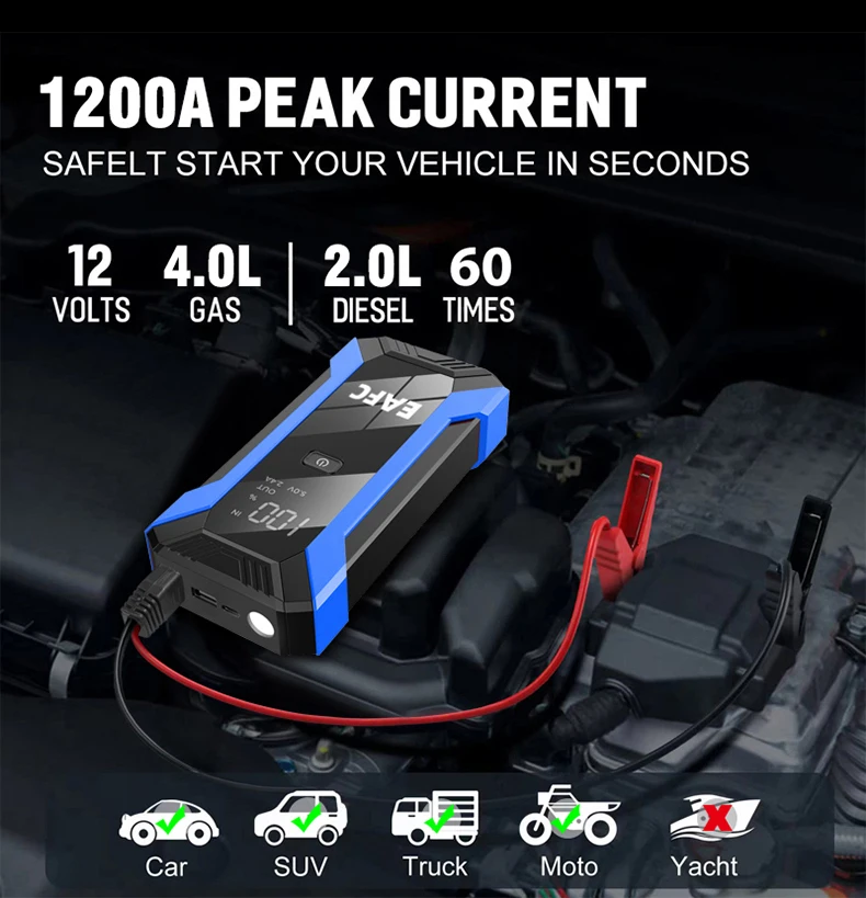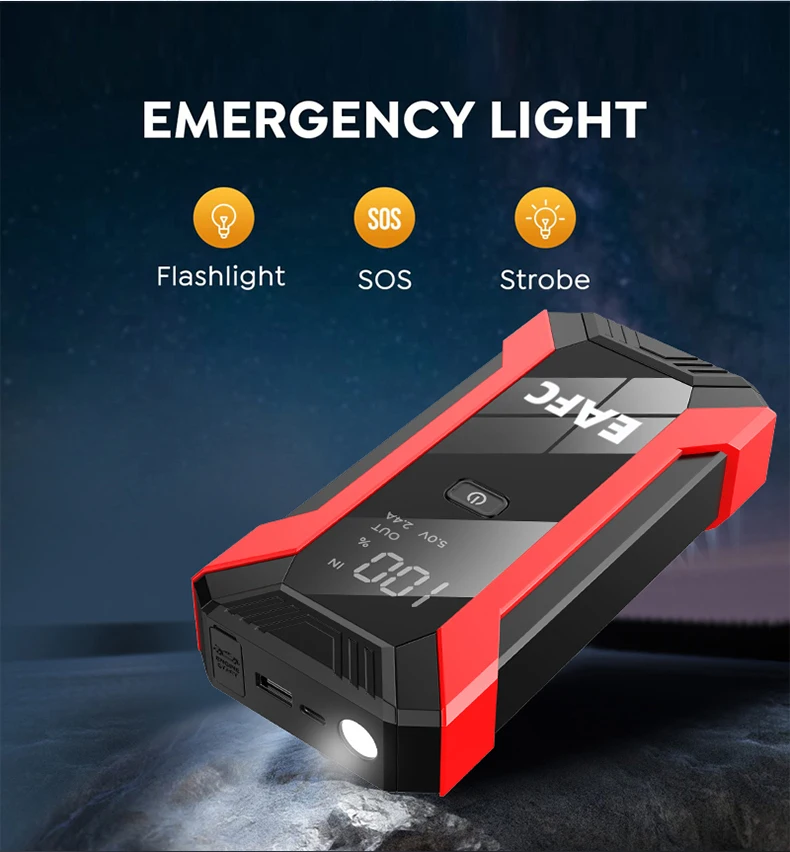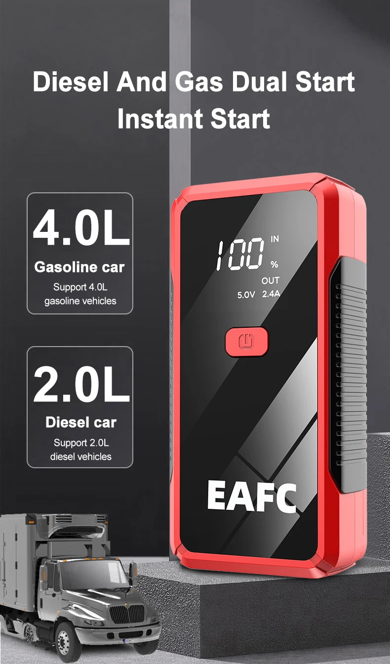 The product has just been received, you must first turn on the flashlight to discharge, and then charge the product for more than 4 hours, and then start the car, because the product is empty. This operation can prolong the service life of the product!