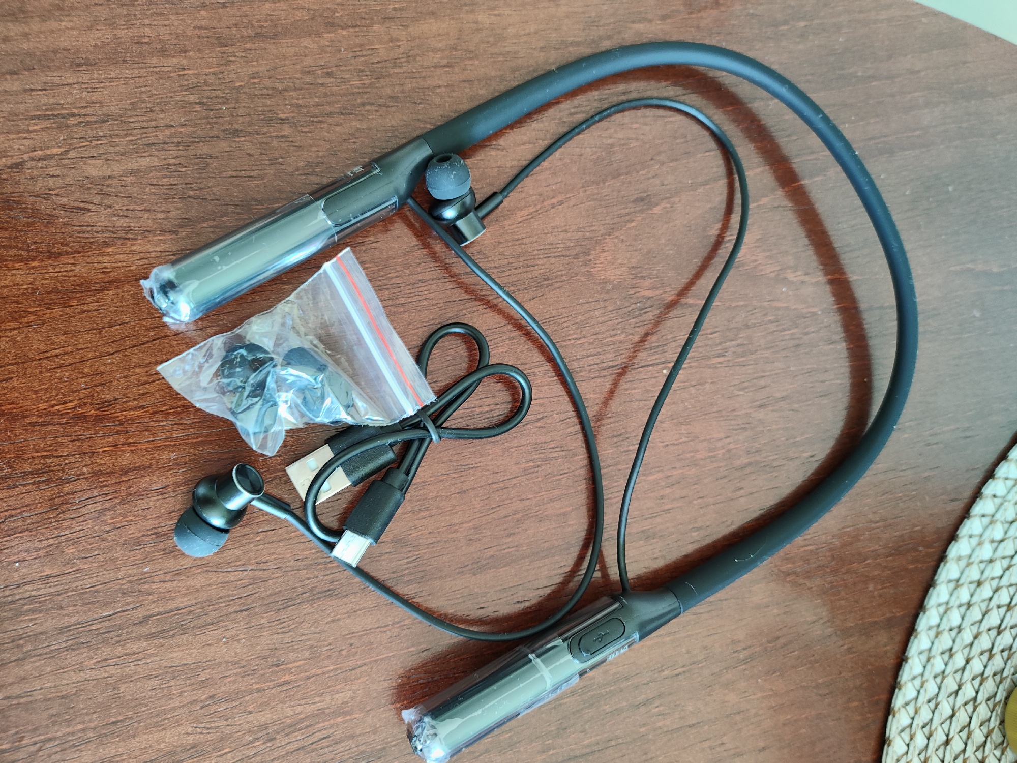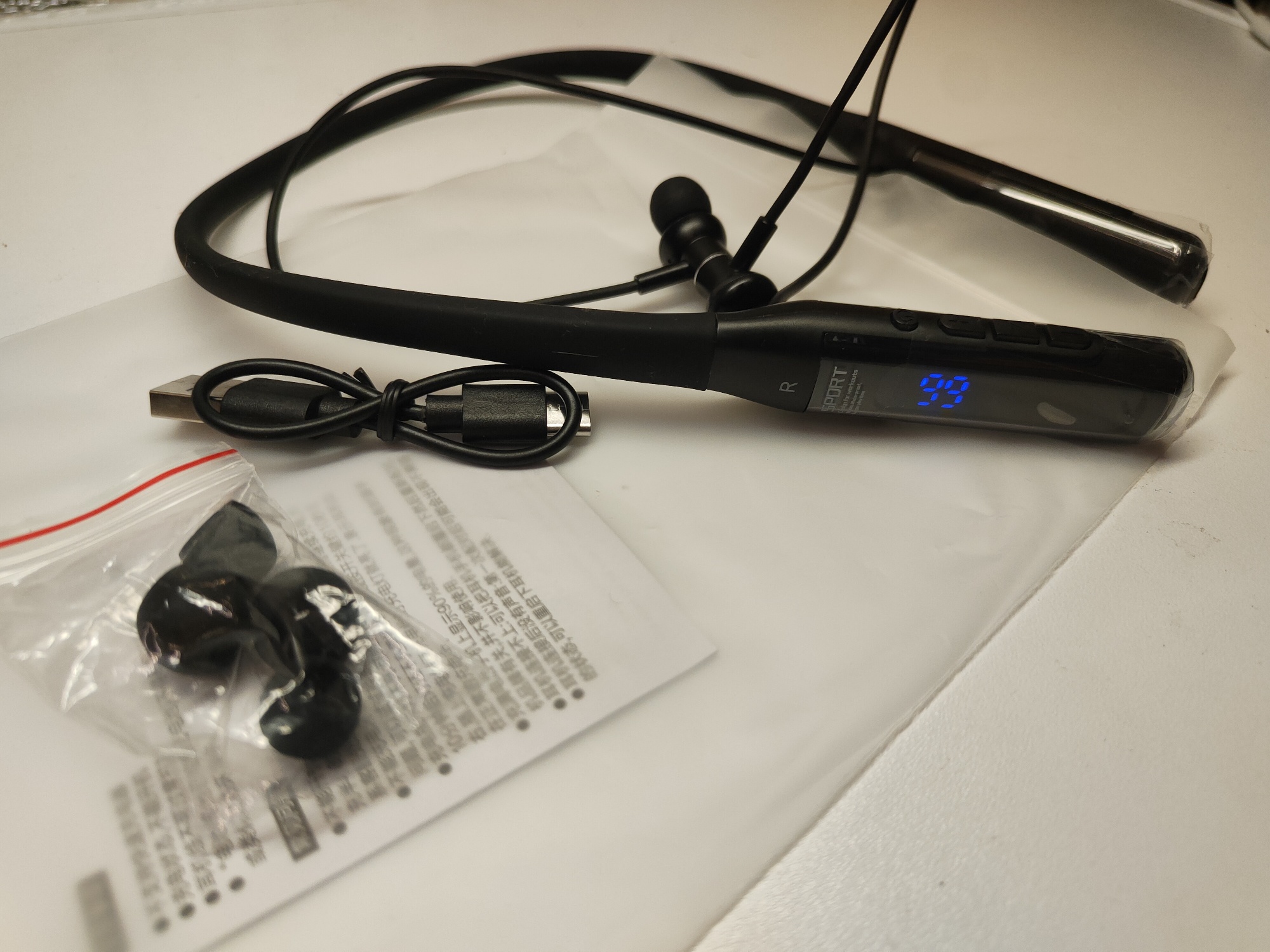 11 days from order to delivery, very good service. Earphones arrived undamaged. No box provided but the zip lock back is quite adequate to hold the earphones, power cord, other size rubber domes and manual. Note USB is C which makes it so much easier to plug in. Arrived at 98% charge. After fully charging it I used the earphones for 8 hours before the SOC dropped back to 98%, this tells me these earphones have a decent battery capacity, I estimate in excess of 200 hours. Sound wise I found them excellent rich bright with good bass without sounding boxy Neck strap is very slim and flexible. Controls are easy to use and logical. Haven't used them for phone calls, but Bluetooth connection to my tablet or PC works without a hitch. Thoroughly recommended.
