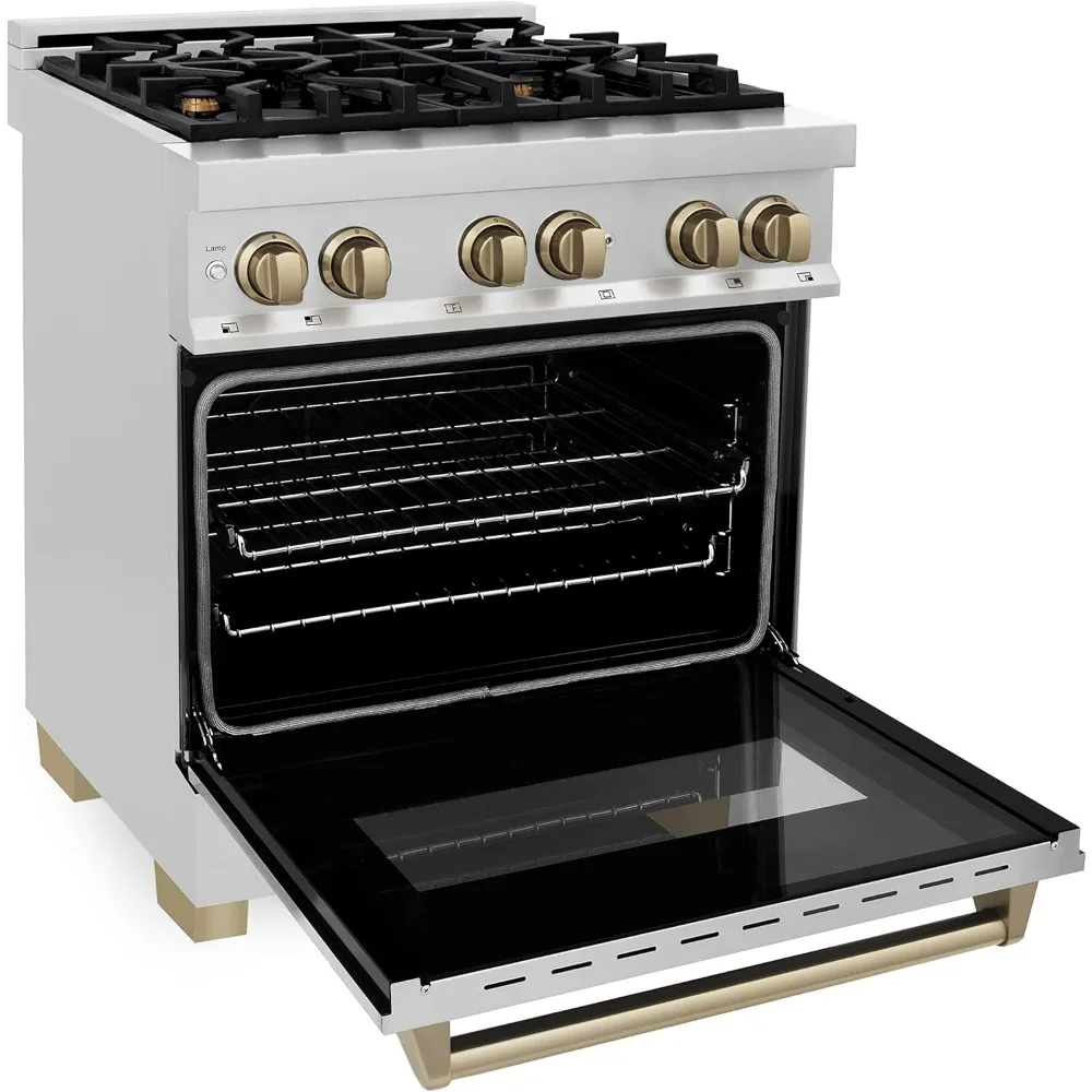 Luxury isn’t meant to be desired – it’s meant to be attainable. Designed in Lake Tahoe, USA, the ZLINE Autograph Edition 30″ 4.0 cu. ft. Dual Fuel Range with Gas Stove and Electric Oven in Stainless Steel with Champagne Bronze Accents (RAZ-30-CB) provides a professional culinary experience by pairing unmatched performance with personalized touches. Encompassing limitless beauty, precision, and quality, the Autograph Edition Series creates a luxury look that will transform your space. Achieve ZLINE Attainable Luxury excellence with innovative features designed to enhance your kitchen’s capability.