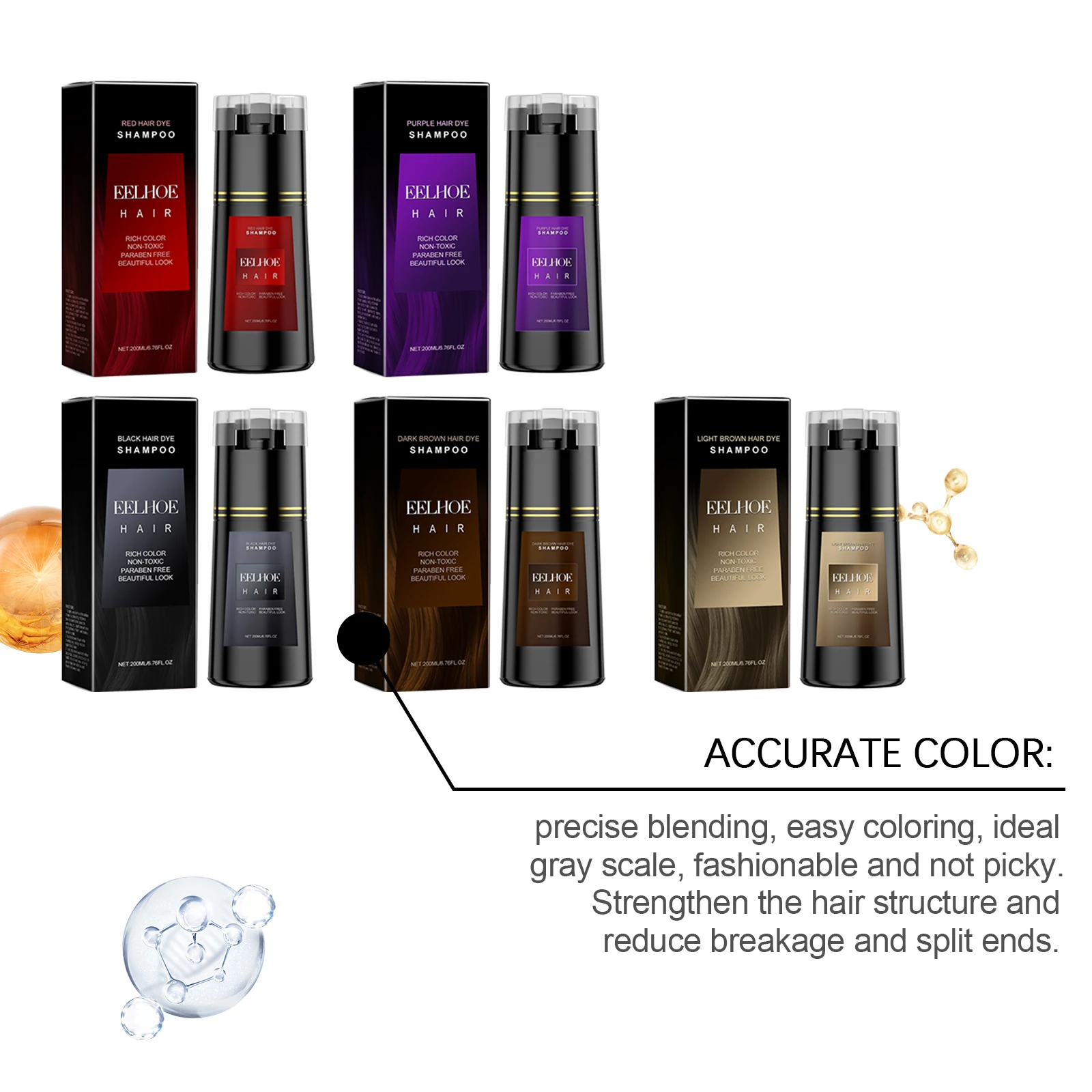 EELHOE Instant Hair Dyeing Shampoo Strengthening Lasting Effect Easy Coloring Nourish Scalp Non-irritating Cover Gray White Hair