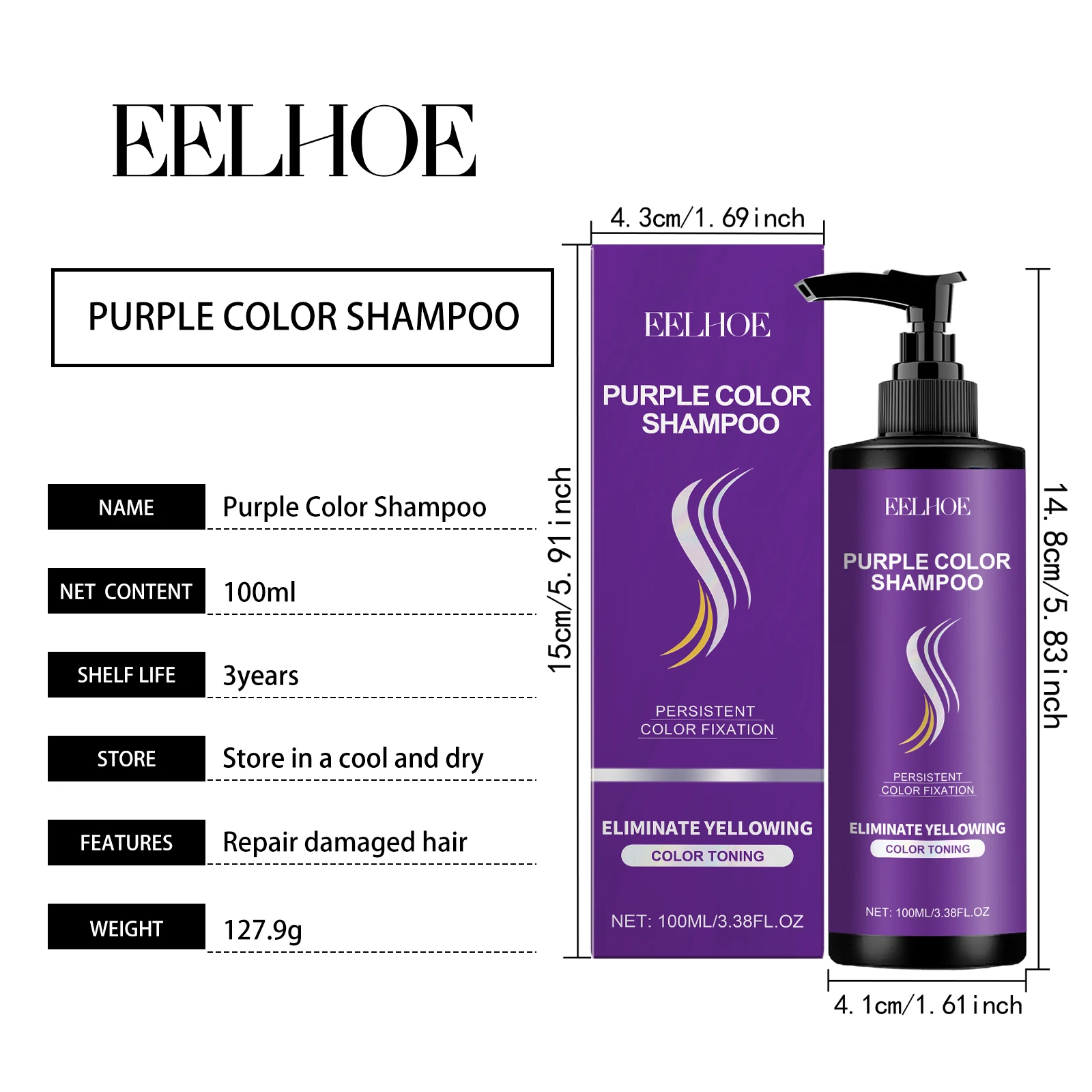 Eelhoe Purple Shampoo For Long Lasting Hair Color Maintenance Daily Nourishing Smooth And Moisturizing Hair Purple Shampoo