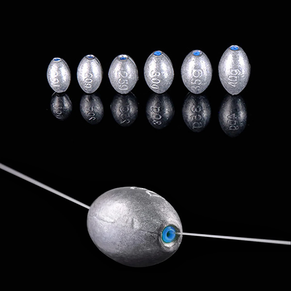 EGG SHAPED FISHING WEIGHT – The egg shaped fishing weight can be widely used for compose different kinds of fishing jigs. It would add the weight for line and hook, keep the hook stable in wind. These can be sinking fastly and to be lifted easily, streamlind shaped for less resistance in air and water