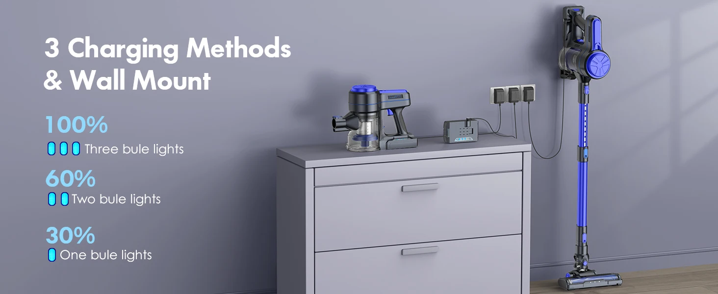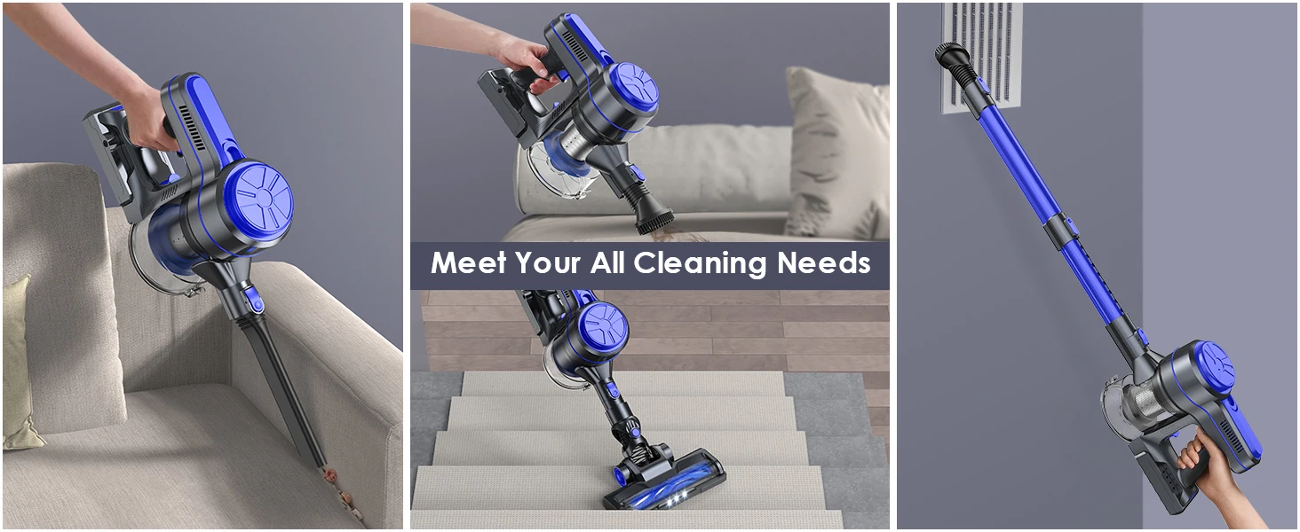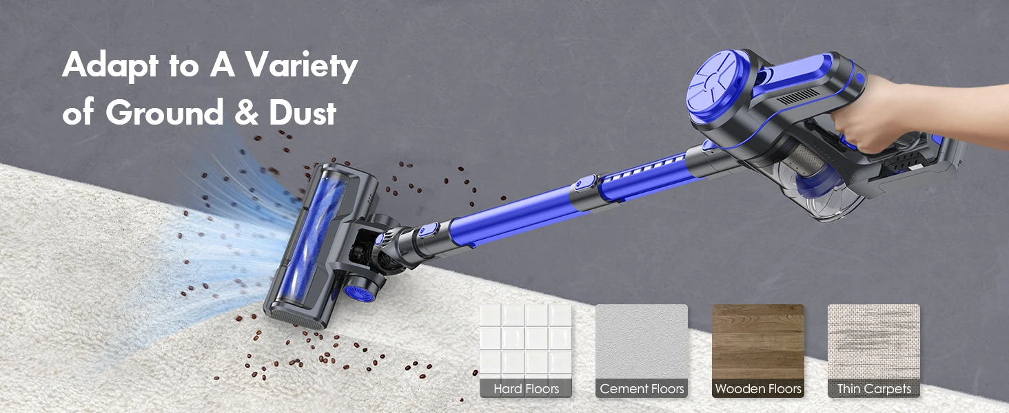 【28kPa Powerful Suction】cordless vacuum cleaner is come with newly upgrated motor and 28000pa powerful suction. Stick vacuum cleaner great for picking up pet hair, food scraps, dirt, and more from hardwood floors and low-pile carpet.