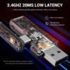 The integrated 2.4GHz USB-A/TYPE-C adapter design not only allows easy connection to PC/PS4/PS5 with 20ms low latency, but also allows easy connection to mobile devices such as smartphones and Nintendo Switch.