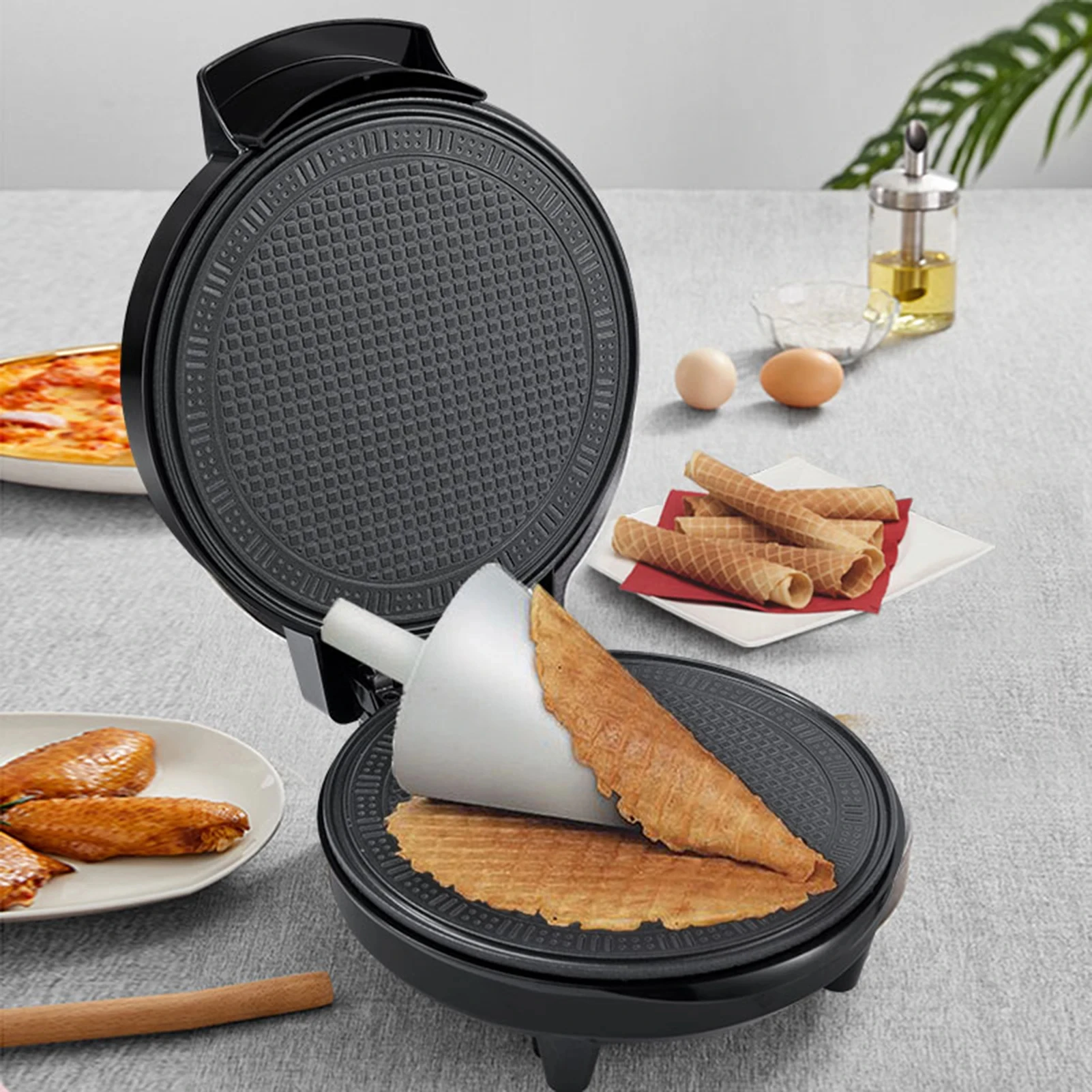 The cream cone machine is suitable for producing all kinds of crepes, such as omelets, pizzas, tortillas, pancakes, potato pancakes, etc.