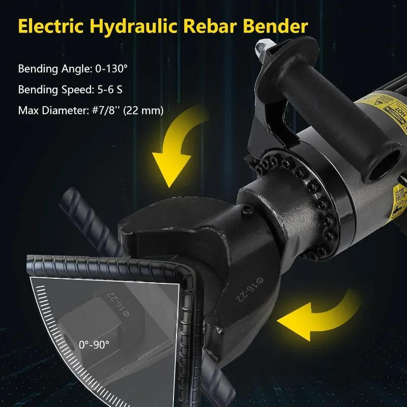 Electric Hydraulic Rebar Bender, 1200W, 7/8 Inch #7 22mm Rebar Bender Tool, Hand Held Meatal Steel Copper Rod Bender Machine, Bending Angle 0-130 degree (1200W 110V NRB-22)