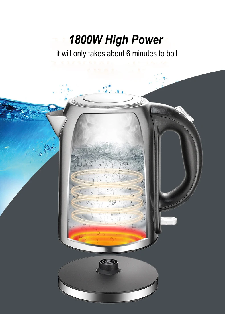 7. Press the position of the power switch, the indicator light is on, and the electric kettle starts to boil water. Note: