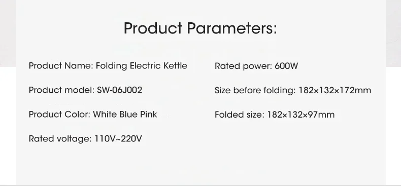 Electric Kettle Mini Foldable Water Heater 600ml Home Hot Water Kettle Portable Kitchen Kettle 220V Travel Home Electric Kettle