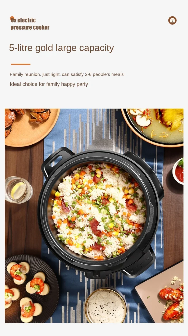 Electric pressure cooker, household multifunctional rice cooker, intelligent 5-liter large capacity