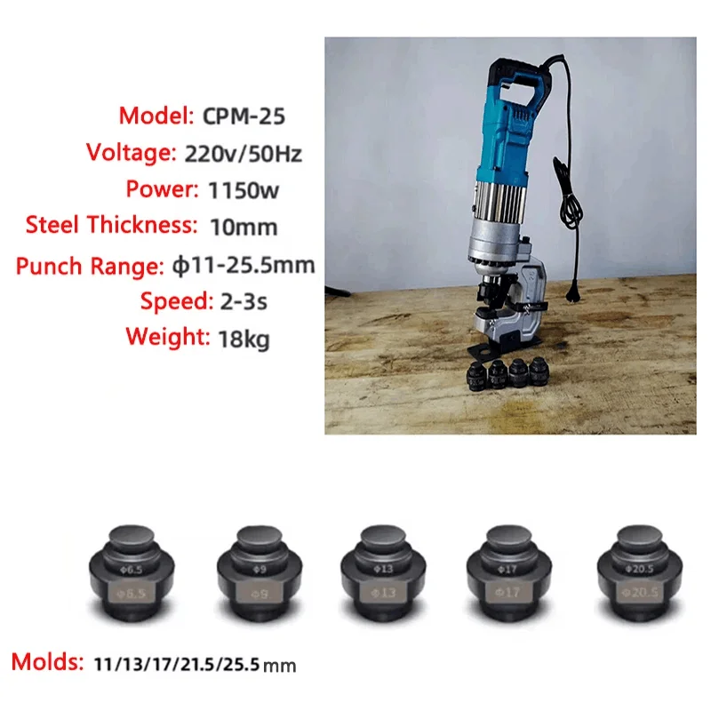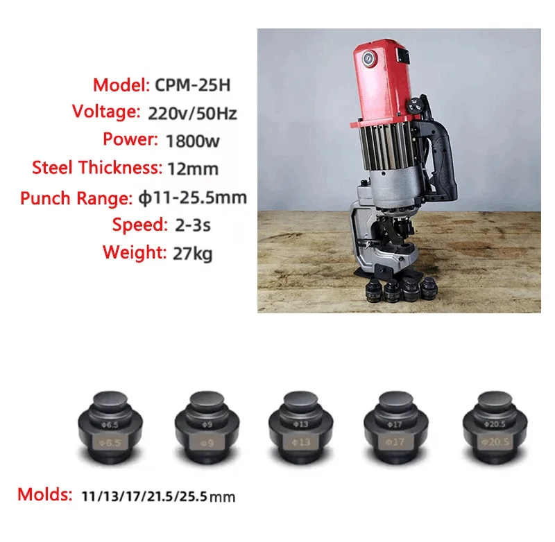 Electric Punching machine CPM-25 Portable Hydraulic Angle steel/Channel steel/Stainless steel Hole Punching machine 10/12mm thick