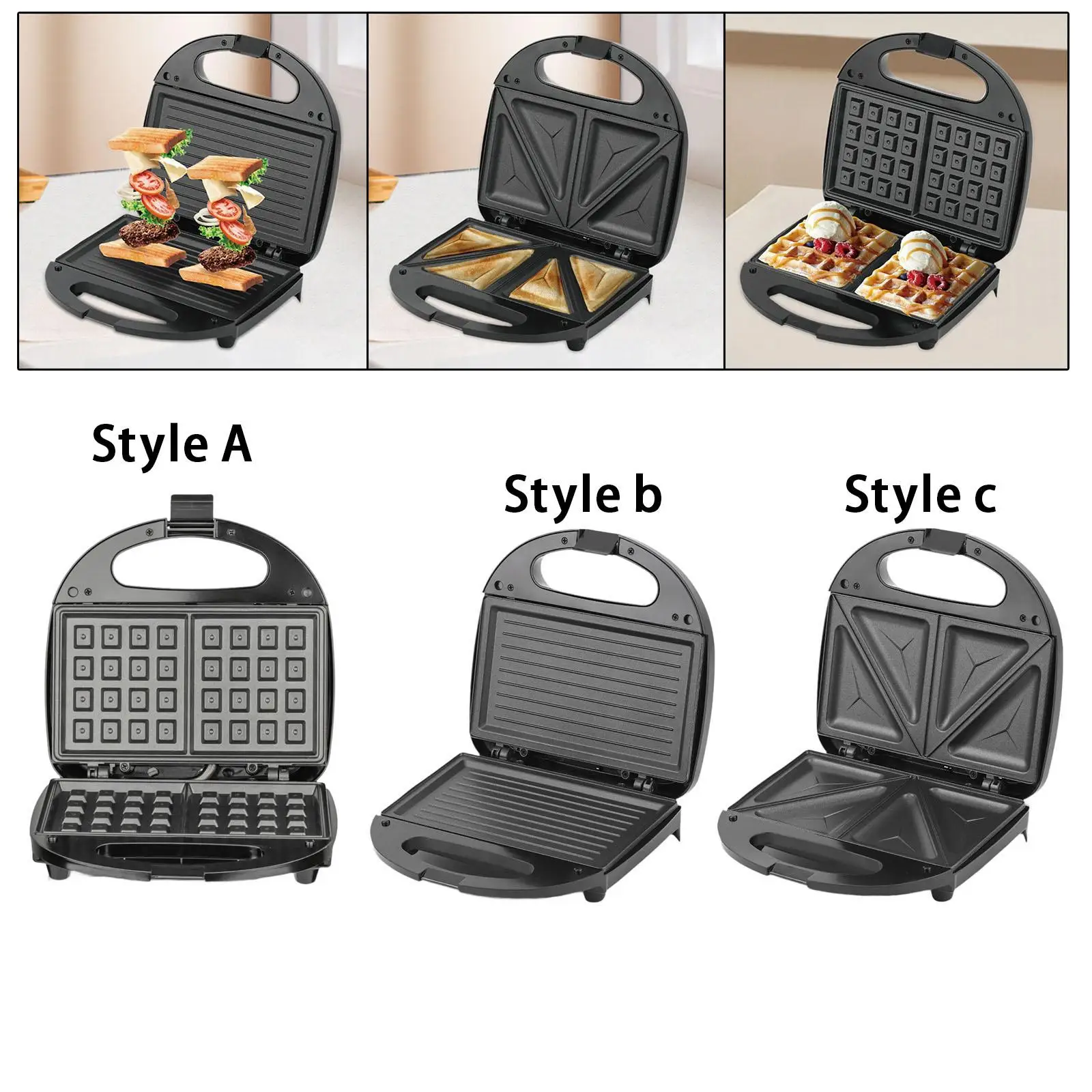 Electric Sandwich Maker Nonstick Plates with Handle Compact Fast Heating Waffle Iron for Omelette Household Lunch Muffins Waffle
