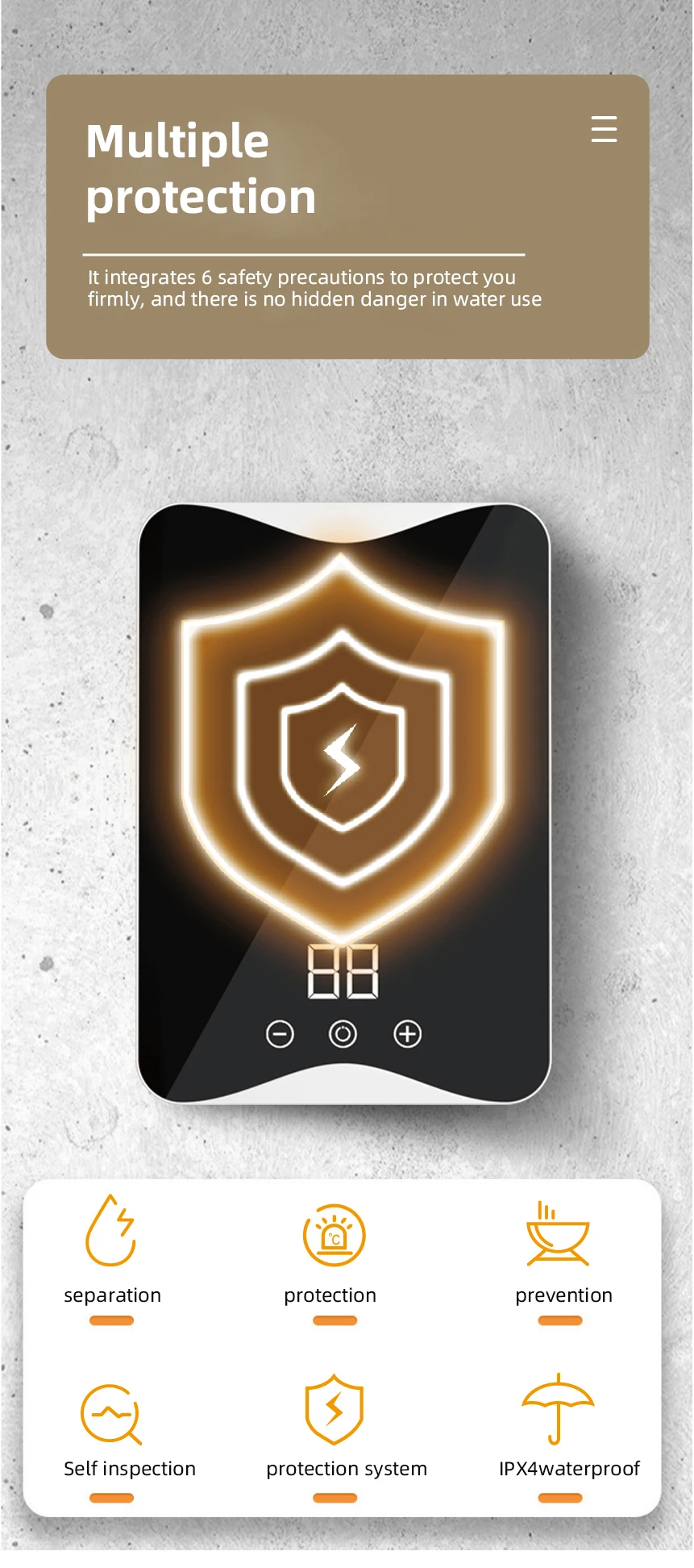 ✅Safety Insurance: There is tankless water heater a leak -proof protection internally. There is a problem with the automatic detection problem. If there is a problem with the problem, Tankless water heater will be automatically disconnected and shut down. The tankless water heater material is waterproof and non flammable.