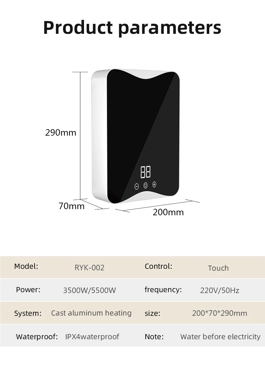 ✅【Tips】 The instant hot water heater does not store water (Water Temperature Range: 35-50℃, Voltage:3500W/5500W; The outlet water temperature depends on the inlet water temperature and water flow. The larger the water flow, the lower the temperature, the smaller the water flow, the higher the temperature.