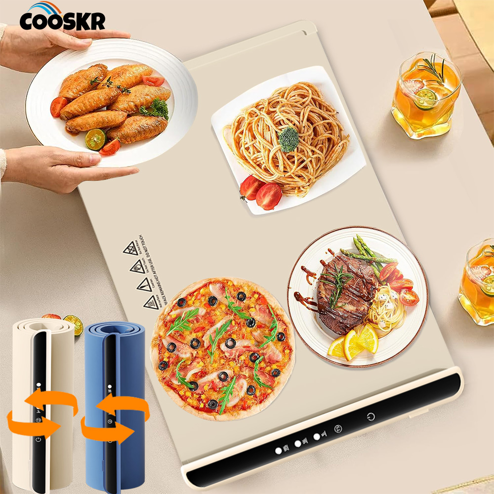 【Premium Silicone Nano Material】Crafted from top-tier flexible silicone nano material, our electric warming tray offers durability, splash-proof protection, stain resistance, and oil resistance. Fold and store without worrying about unsightly creases, ensuring lasting quality.