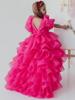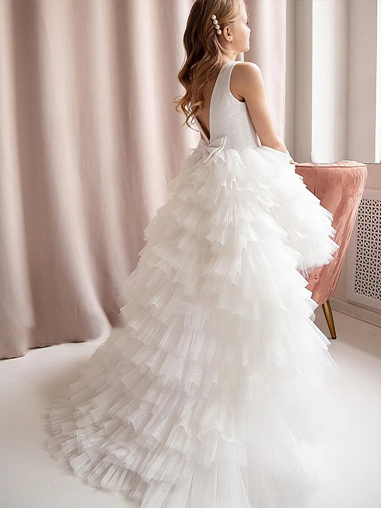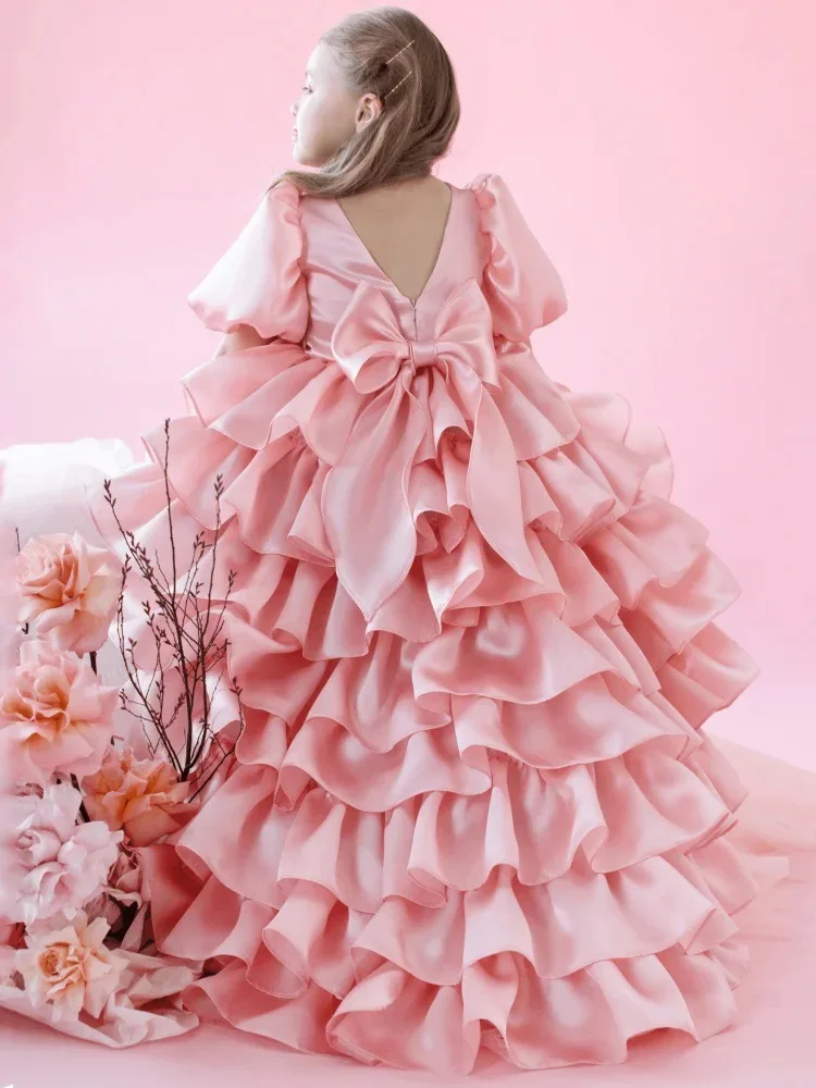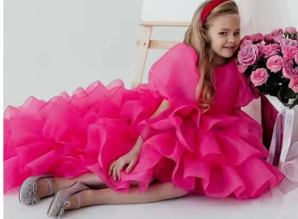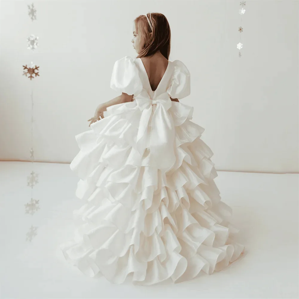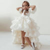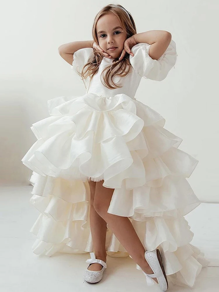 Elegant High Low Ruffles Gowns Dress for Baby Girl Puffy Sleeve Fancy Birthday Party Princess Dress Performance Tiered Vestidos