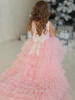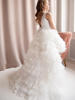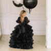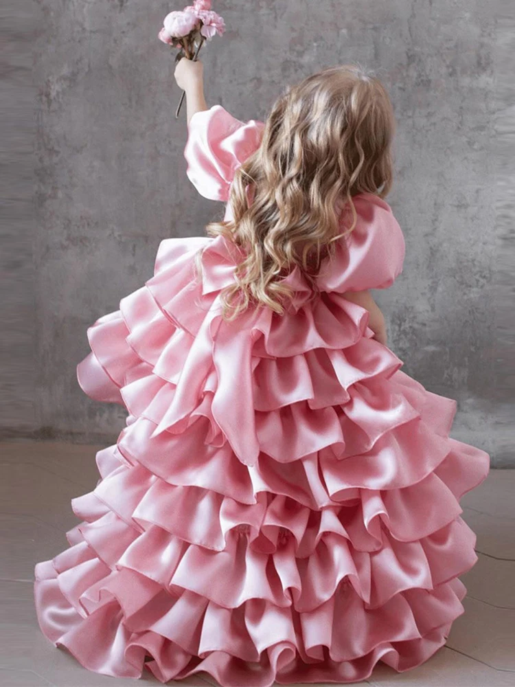 This dress features a high-low ruffle design, making it perfect for special occasions like birthdays and princess parties.