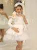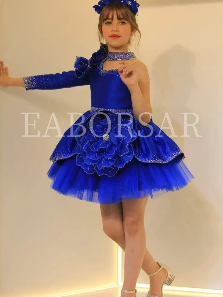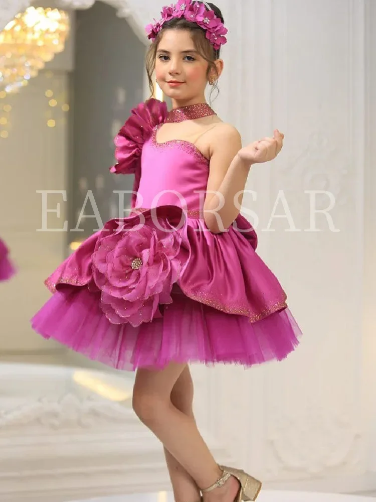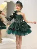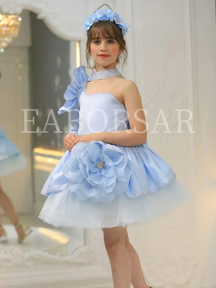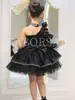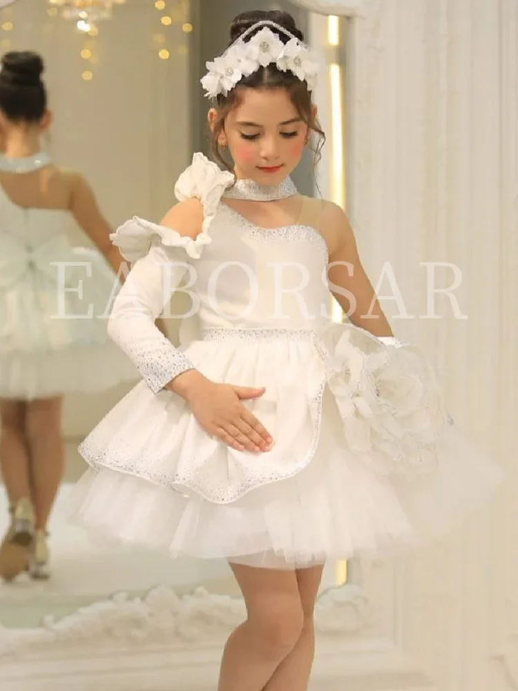 Elegant one-shoulder flower girl dress flower decorations children’s day stage performances costumes shiny tiered evening dress