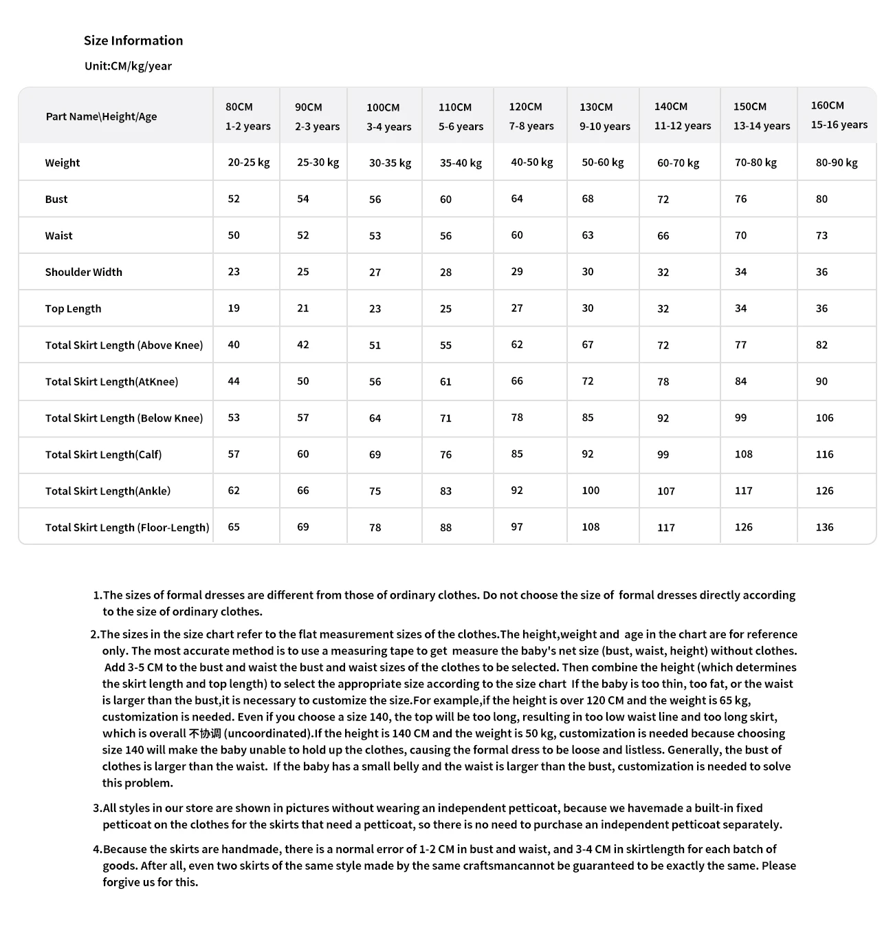 1. Bust = ___ cm/inches.