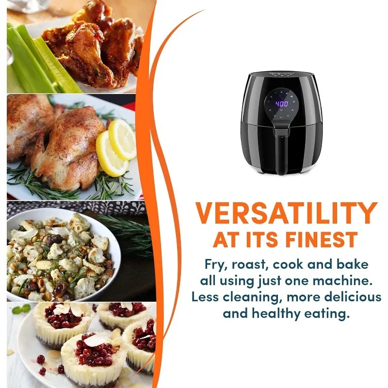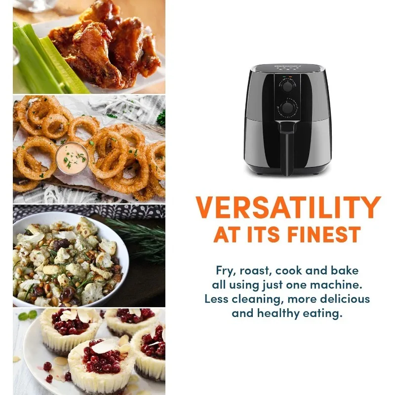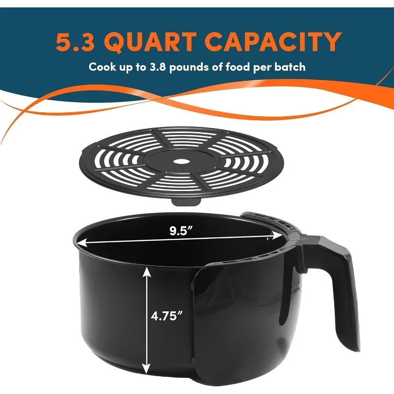 - EXTRA LARGE CAPACITY: The non-stick basket holds 5.3 quarts or up to 3.75lb of food, perfect for family-sized meals. Cook healthier, faster and more safely than deep frying in oil, eliminating splatter, fatty oils and reducing electricity use