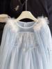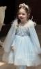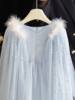 Dramatic Detachable Cape: Includes a matching light blue tulle cape with faux fur trim and gold sequin details, easily removable to create two distinct looks – simple elegance or full royal grandeur.