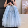 Dramatic Detachable Cape: Includes a matching light blue tulle cape with faux fur trim and gold sequin details, easily removable to create two distinct looks – simple elegance or full royal grandeur.