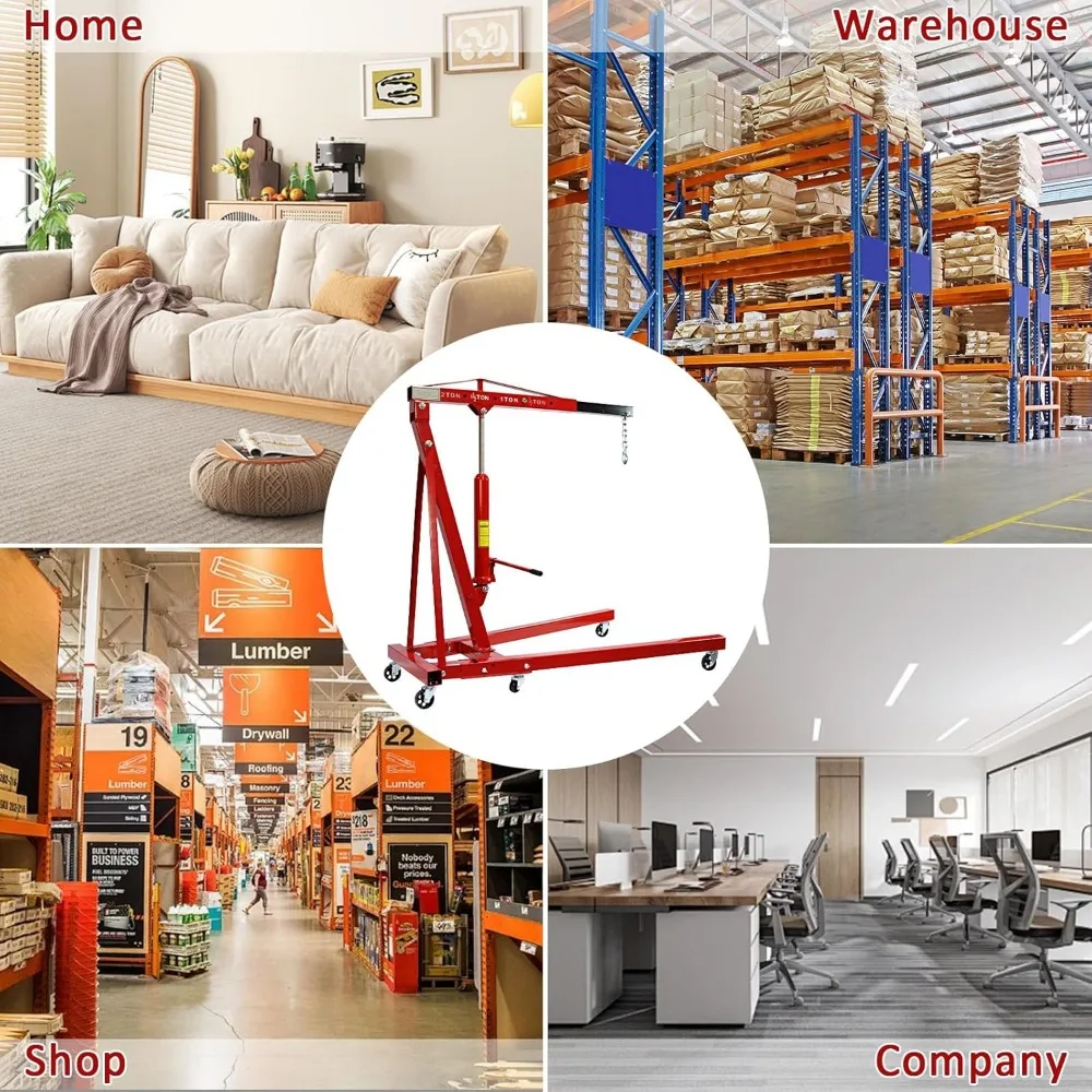 - Foldable Engine Hoist: When your work is done, simply fold the engine hoist for convenient storage. Its compact design minimizes space usage, keeping your garage or workshop tidy. Elevate your repair efficiency with our innovative 2-in-1 engine hoist!