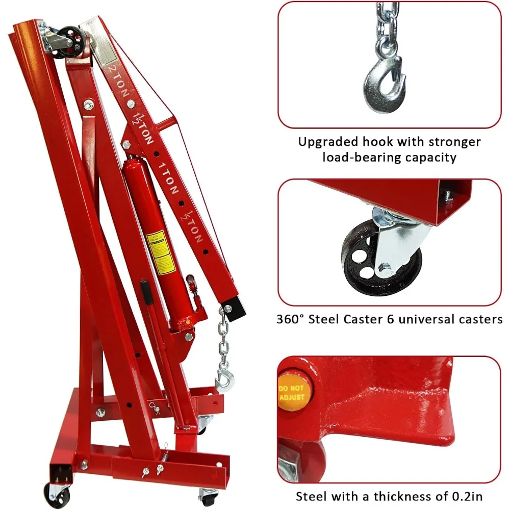- Unparalleled Strength:Crafted from high-strength, heavy-duty steel materials, our engine hoists come with an 8 ton hydraulic pump, our engine lift boasts an extraordinary lifting capacity of up to 4400 lbs/2 T, making t is the perfect solution for handling heavy engines. Its robust construction ensures both strength and stability, providing a safe and efficient lifting experience that surpasses industry standards.