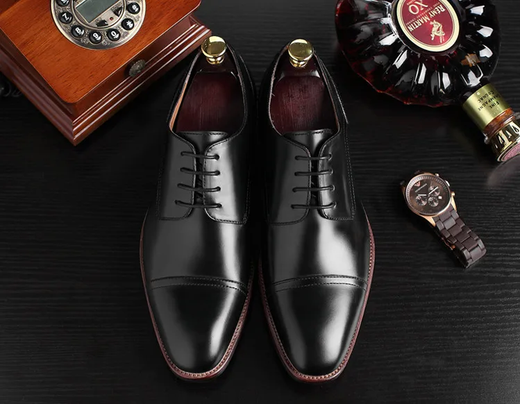 England Men New Style Genuine Leather Lace Up Black Dress Shoes Men Gentleman Sewing thread Pointed Toes Work Shoe Free Shipping