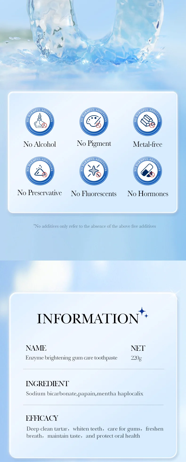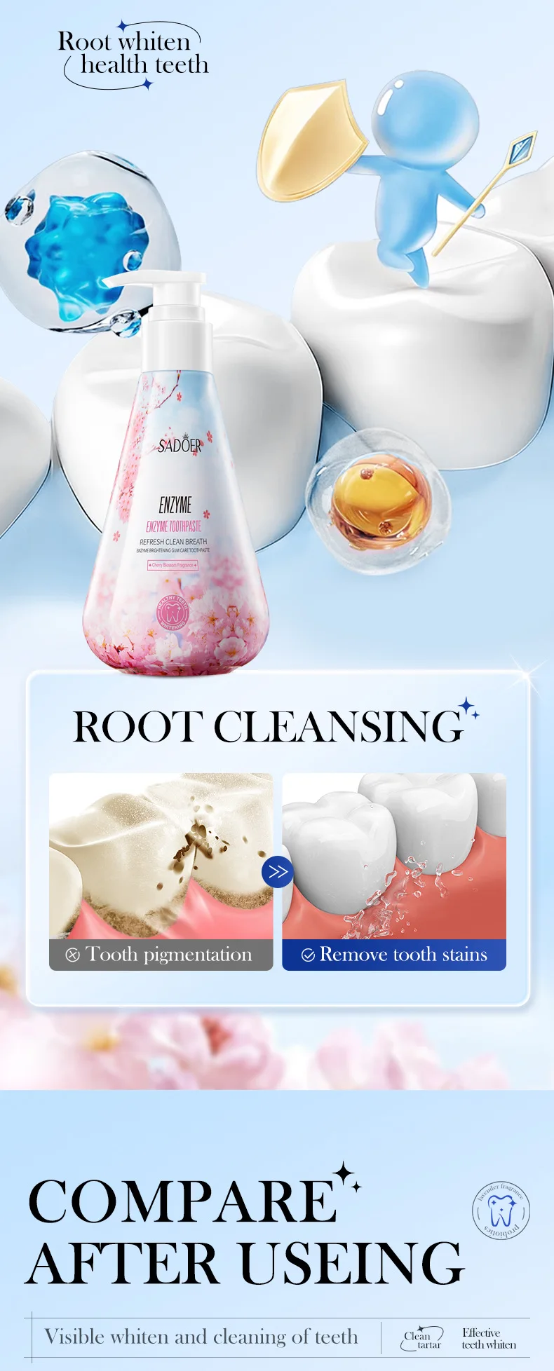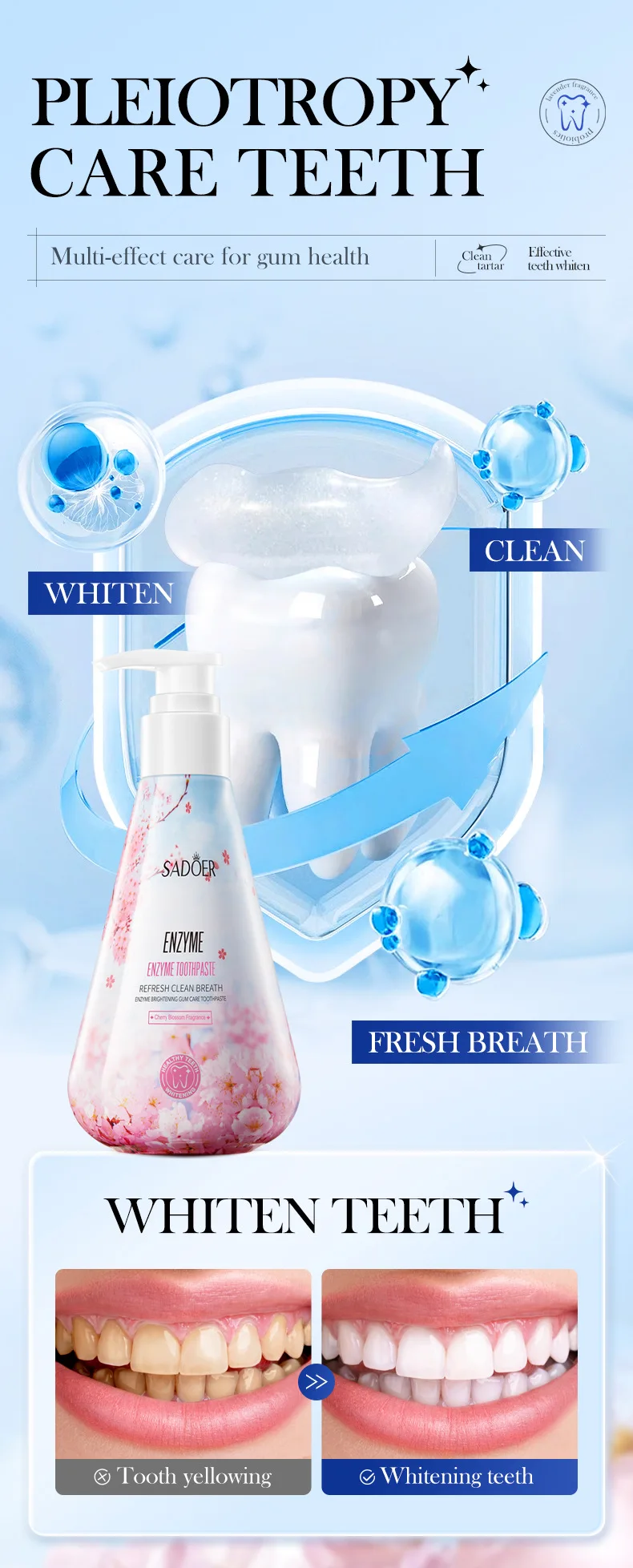 Enzyme Whitening Toothpaste Gum Care Cleans Gaps Between Teeth and Protects The Mouth Remove Yellow Teeth Stains 220g