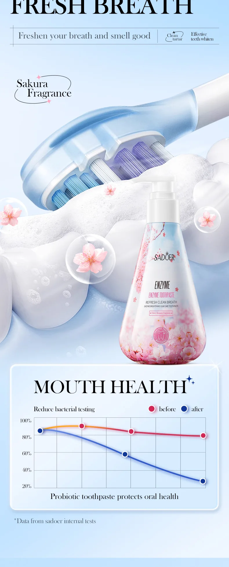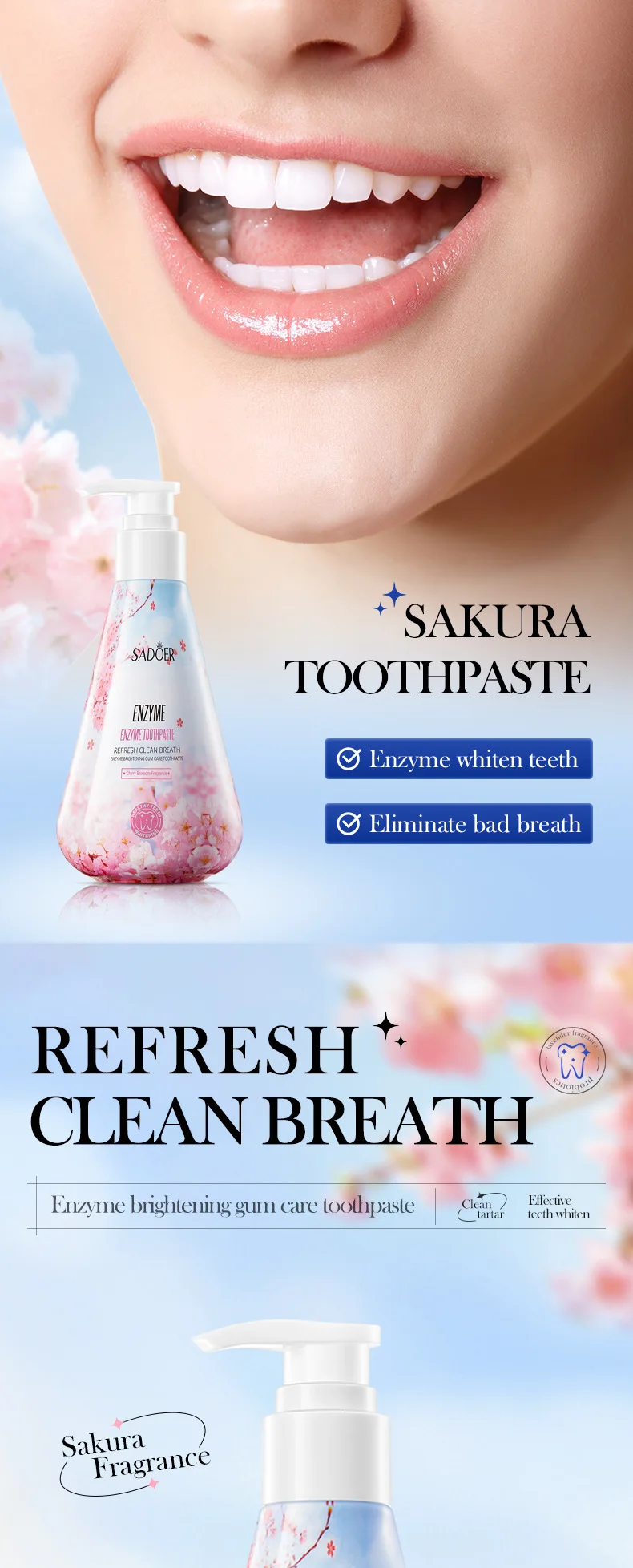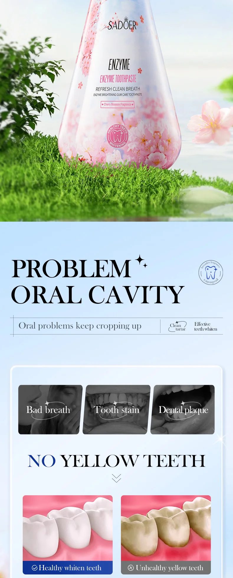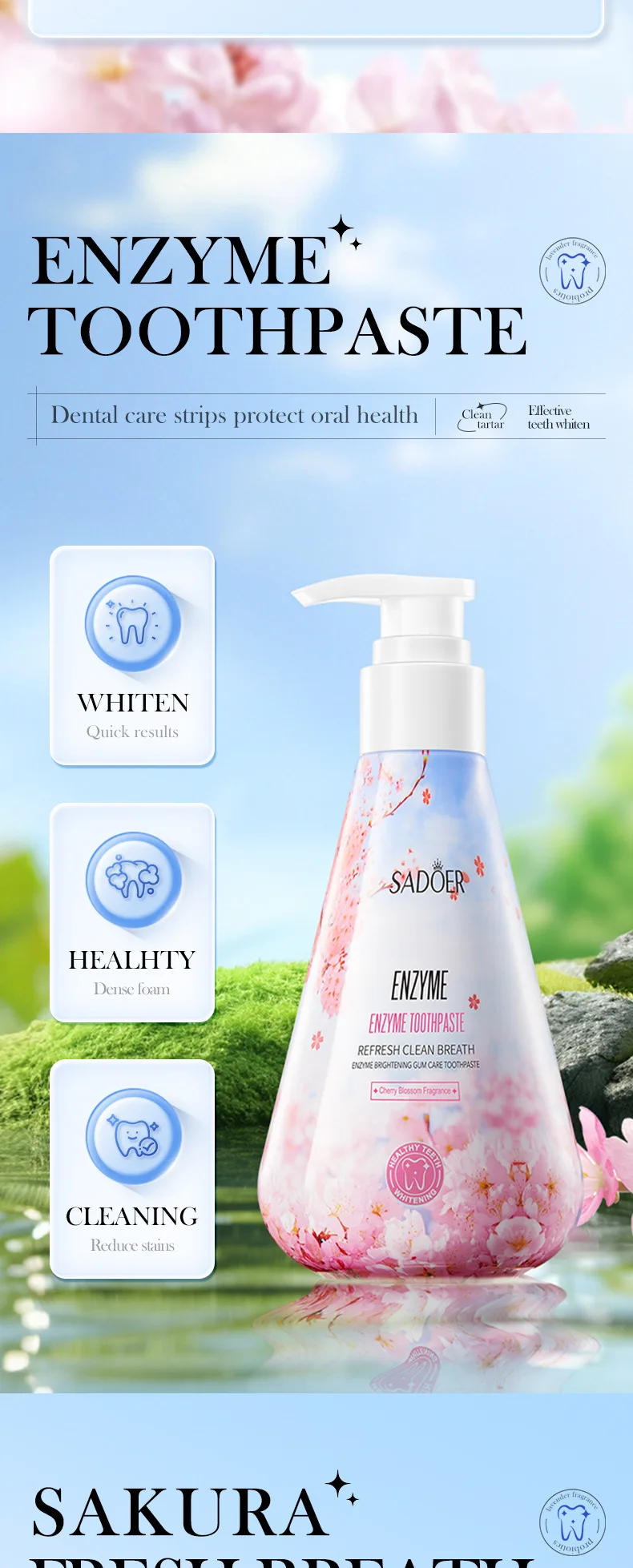 Enzyme Whitening Toothpaste Gum Care Cleans Gaps Between Teeth and Protects The Mouth Remove Yellow Teeth Stains 220g