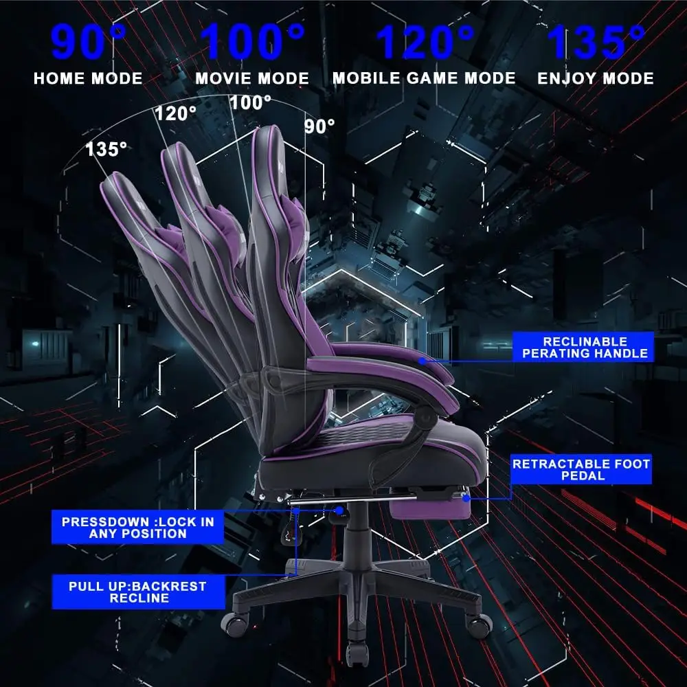 - Ergonomic Design: Adjustable high backrest can recline 90 ° – 135 ° and lock in any position, The backrest provide good lower back support and prevent your back from getting tired. It is also combined with the footrest, it can be used for gaming, working and napping.