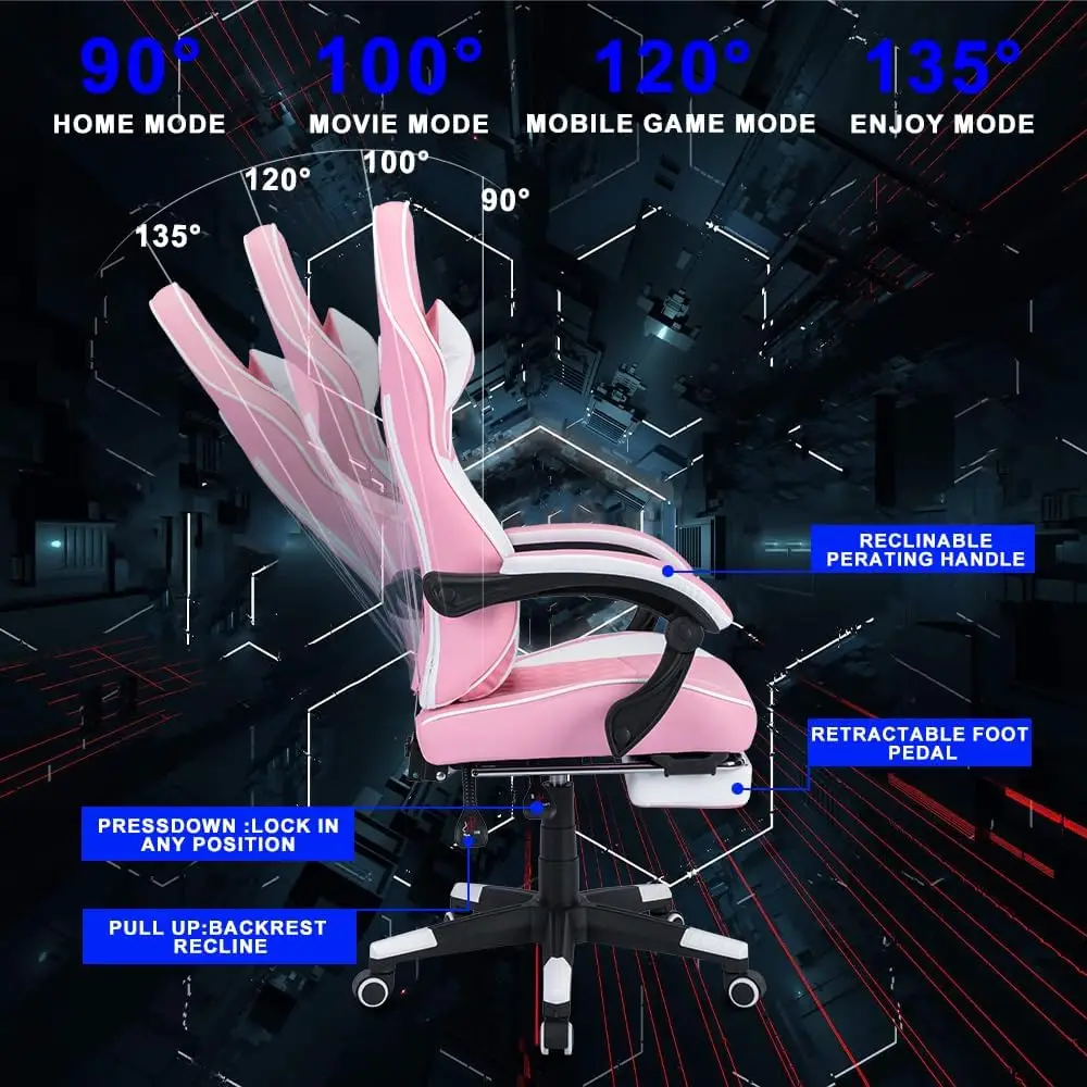 - Thickened And Widened Cushion: This seat cushion of gaming chairs is composed of pocket springs and shaped foam, allowing for the same elasticity and comfort as a sofa.