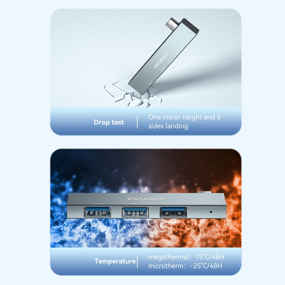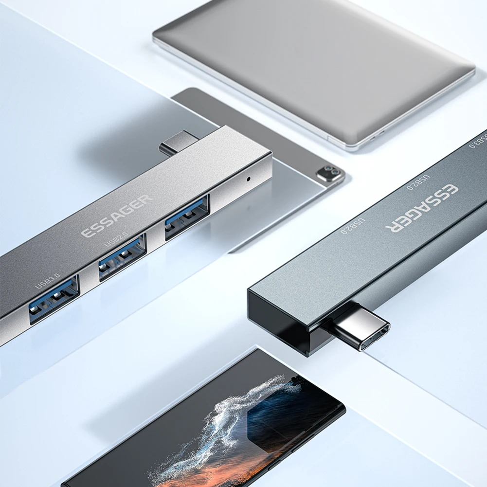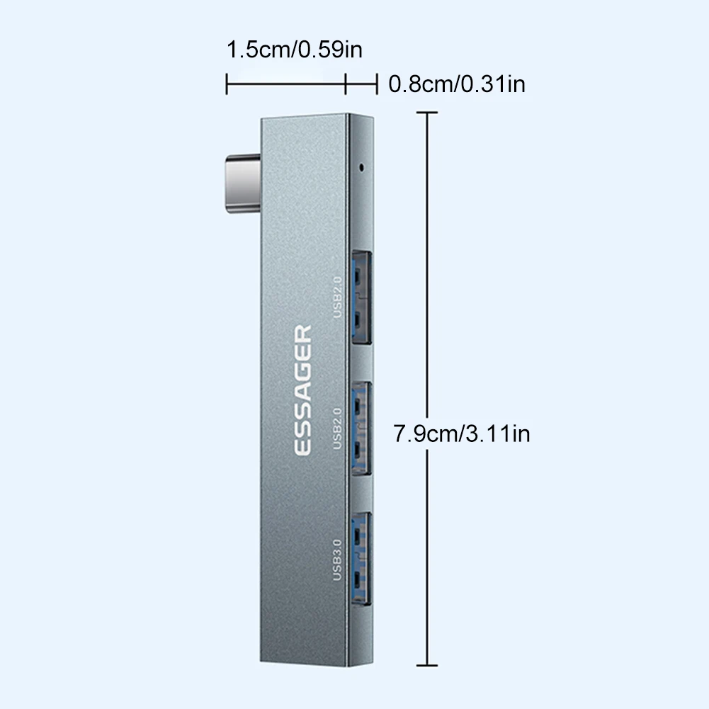 ESSAGER 3-in-1 3 Ports Splitter Adapter Portable Expander Hub High Speed Plug and Play Accessories for Computer/Tablet/Phone