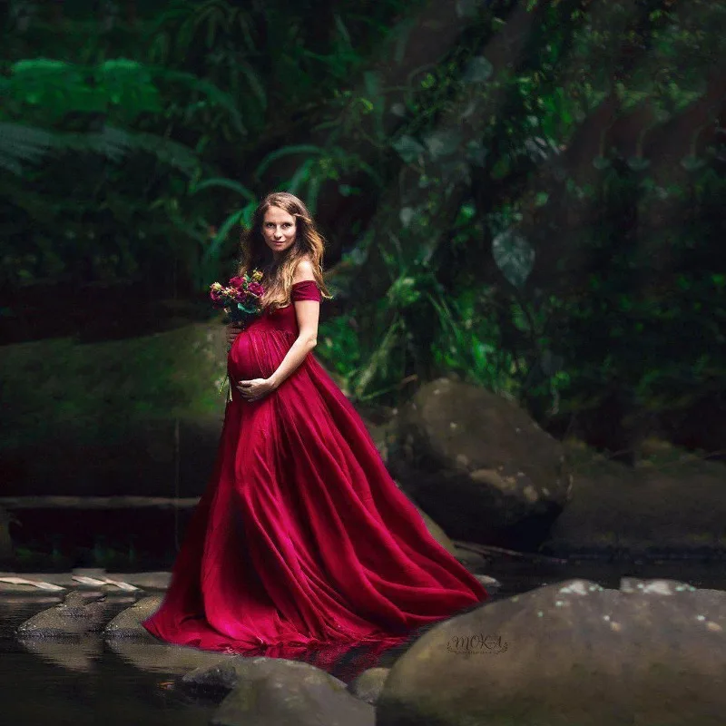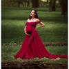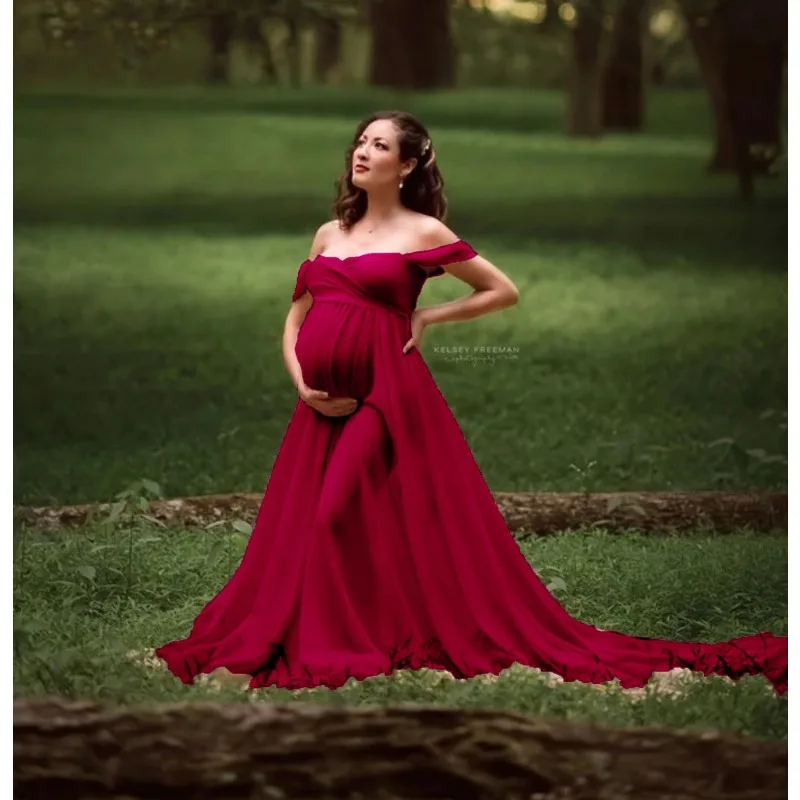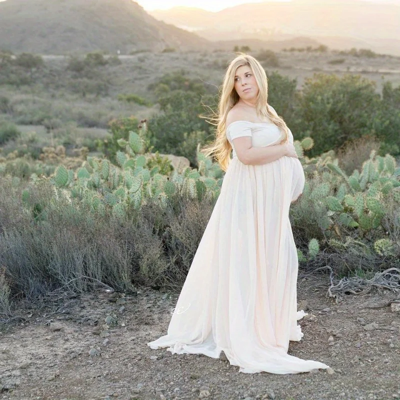 European & American Maternity Dress – Lace & Maternity Gown with Flowy Train and Flutter Sleeves for Photography!