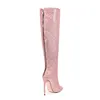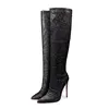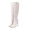 European and American Fashion Gretel Material Zipper Knee High Rhinestone Boots for Women’s Sexy Slim High-heeled Banquet Boots