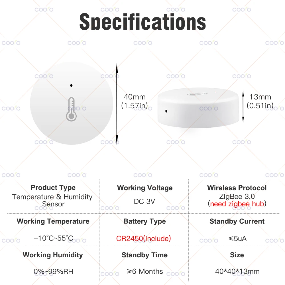 New ZigBee technology with low power consumption microprocessor for long standby. Designed with low voltage monitoring reminder function in App for real-time power supply for your sensor. Battery powered with long battery life.(battery NOT include)