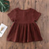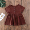 Toddler Baby Girl Summer Dress Solid Color Short Sleeve Button Cotton Linen A-line Mini Dress