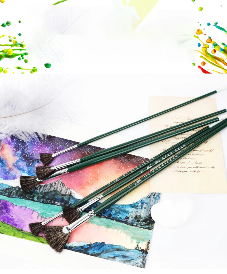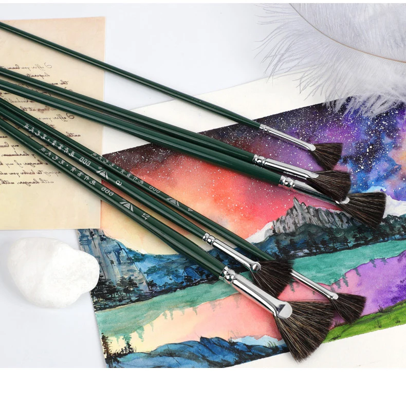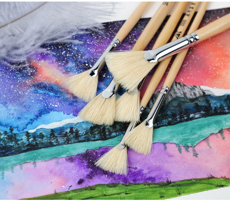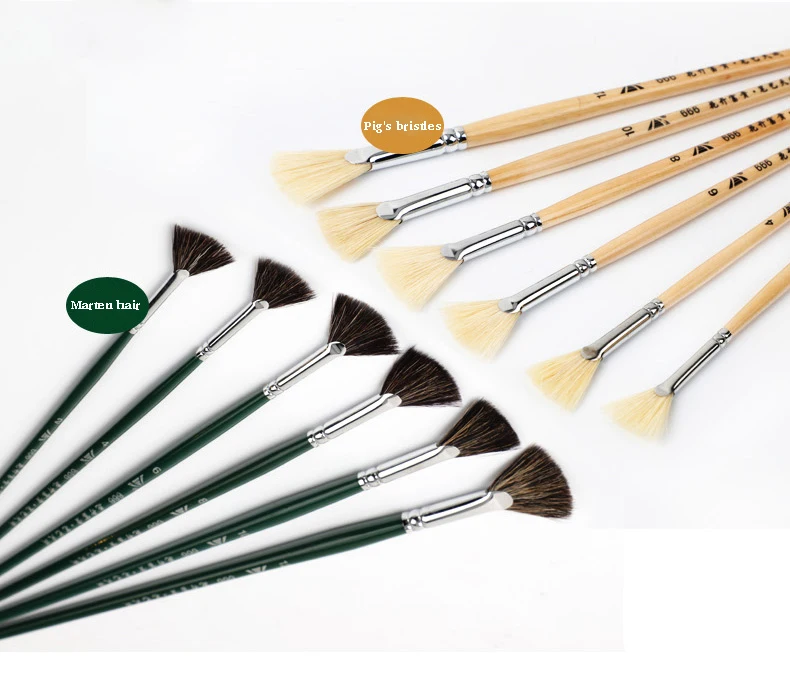 Fan-shaped Marten hair watercolor brush gouache acrylic pen pig Bristles hair oil brush adult beginner hand-painted paint brush
