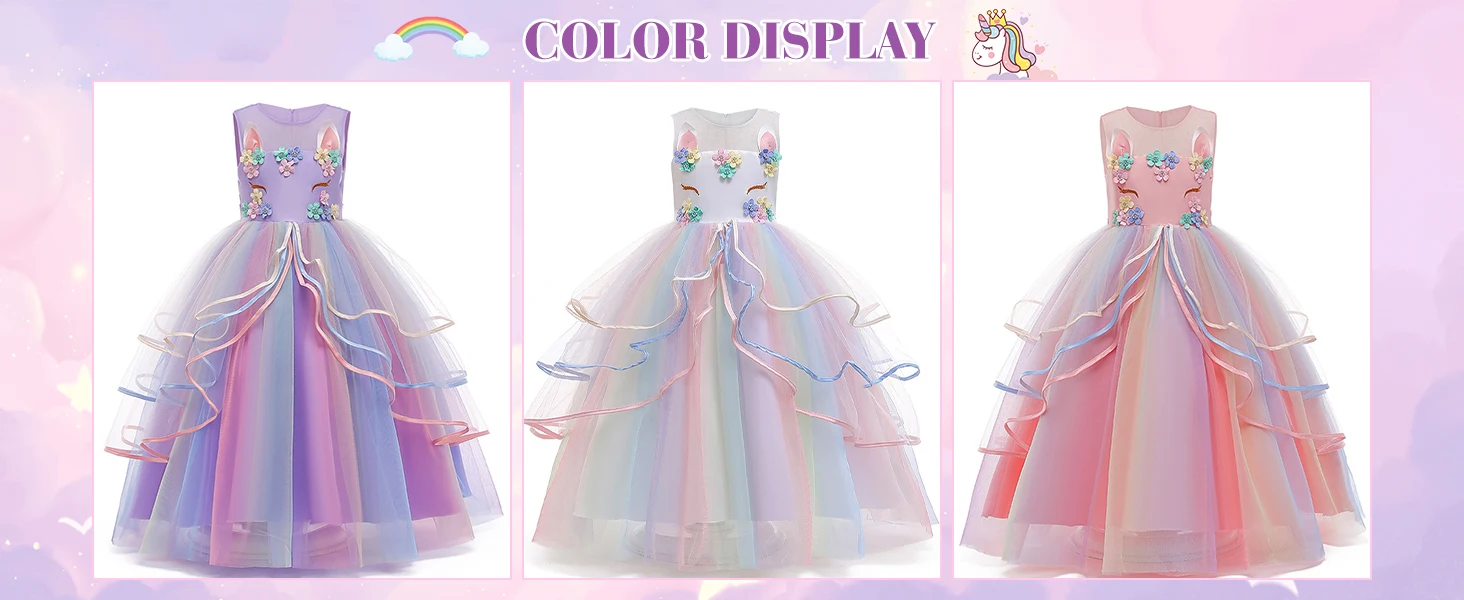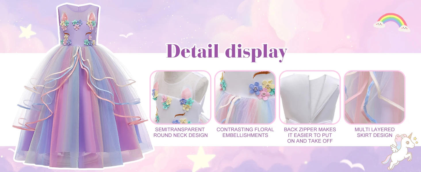 🦄Soft Material – Unicorn party dress,made of high quality Lace + Polyester fabric, comfortable lining and elaborate stitching,popular element dress,birthday gifts for girls