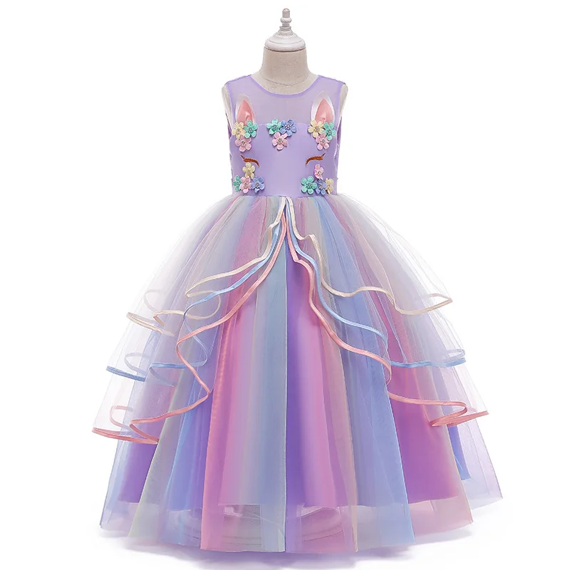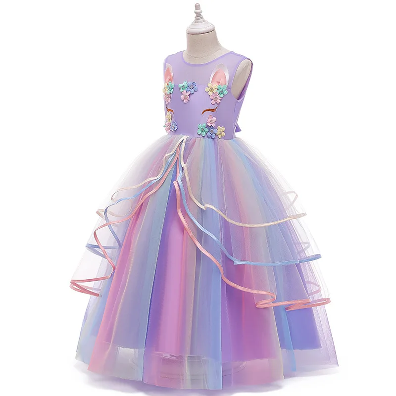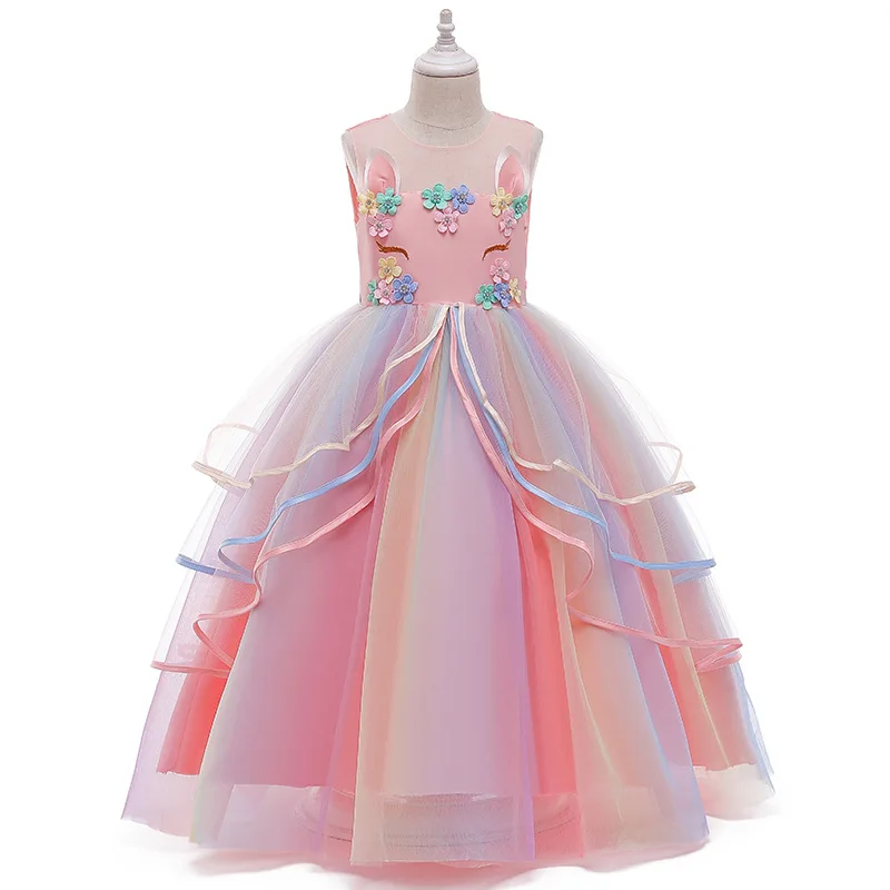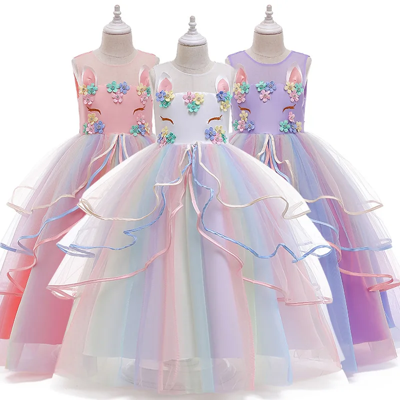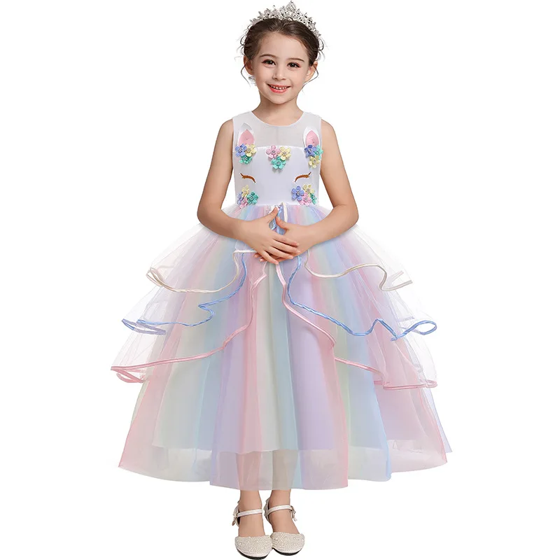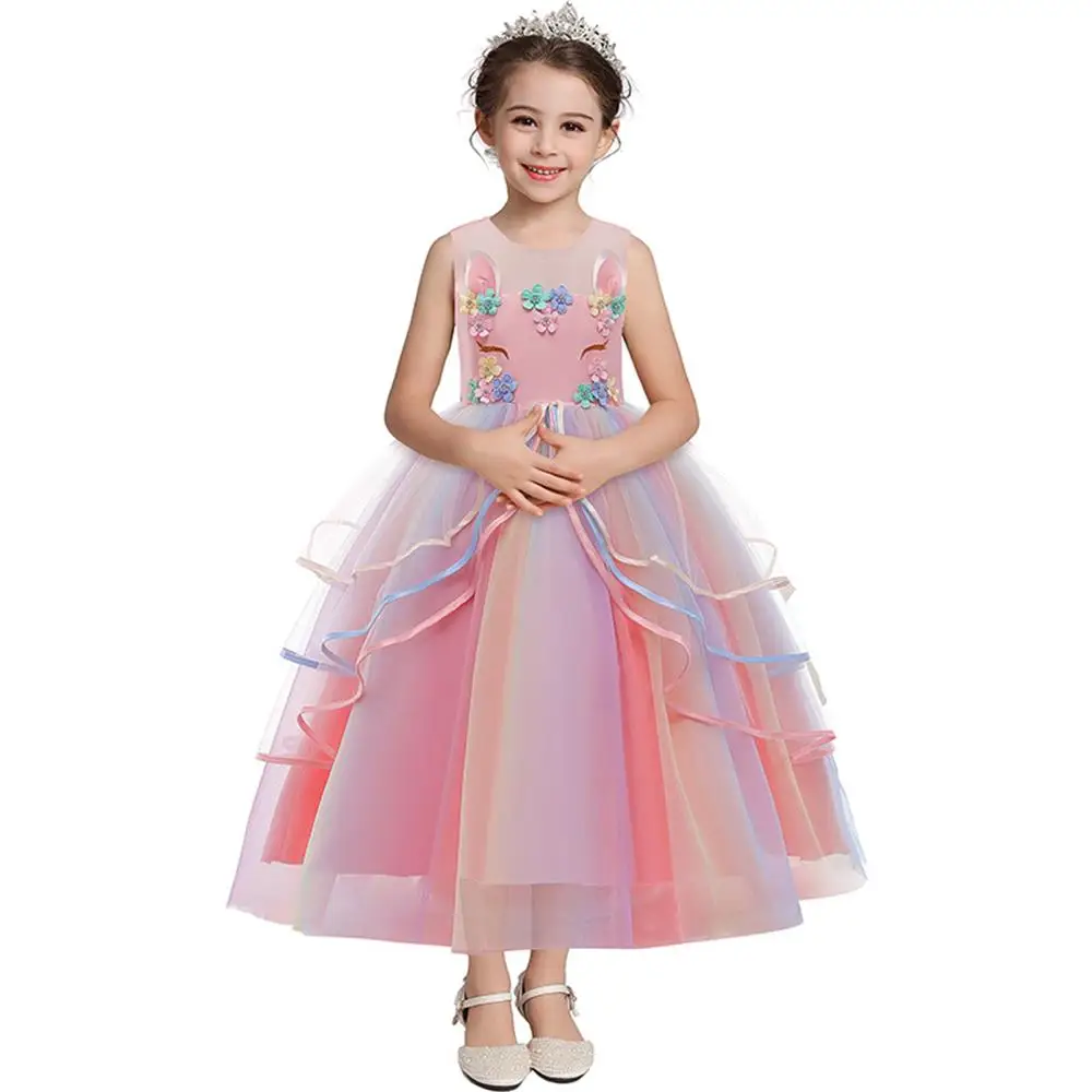 Unicorn Dresses For Girls Christmas Party Long Dress Halloween Carnival Costume Kids Birthday Cosplay Princess Dress 4 to 10 Yrs
