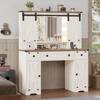 【Powerful Storage Capacity】Large dresser comes with enough capacity storage. The spacious tabletop and hidden storage shelves behind sliding barn door are enough to hold your frequently used makeup items, making your desktop more clean and tidy. The dressing table has 5 drawers and 2 side cabinets, which are perfectly able to hold all your other stuff. Keep everything organized and within reach.