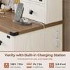【Hook up Your Devices】This vanity with charging station is equipped with 2 standard plug sockets and 2 USB ports, allowing you to use your hair dryer or curling iron more conveniently while applying make-up, as well as charging your cell phone, tablet, or other electronic devices. In this space that belongs to you, relax and listen to music, watch tutorials and share a photo or video.