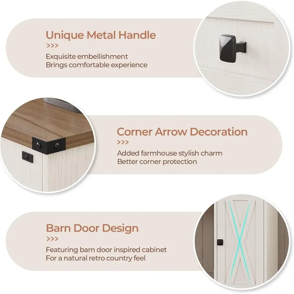 【Farmhouse Style Makeup Vanity】Antiqued two-tone aesthetic blends and walnut woodgrain finishes with a barn door trim design to add to the farmhouse charm and elegance. Also, the exquisite metal handle and corner arrow decoration added a natural retro country feel. The Gift of Love for your girl, wife, mom or friend!