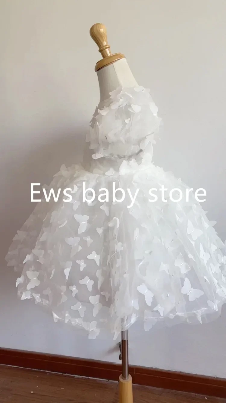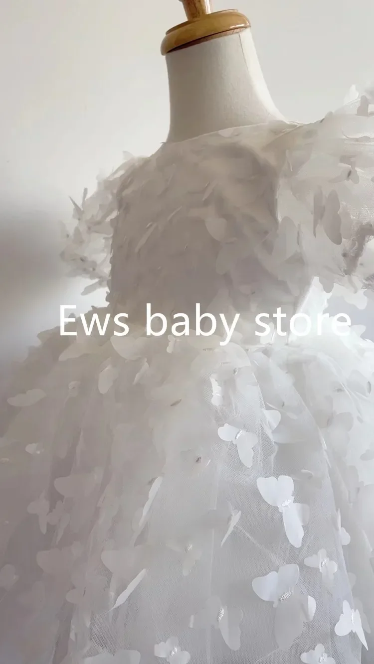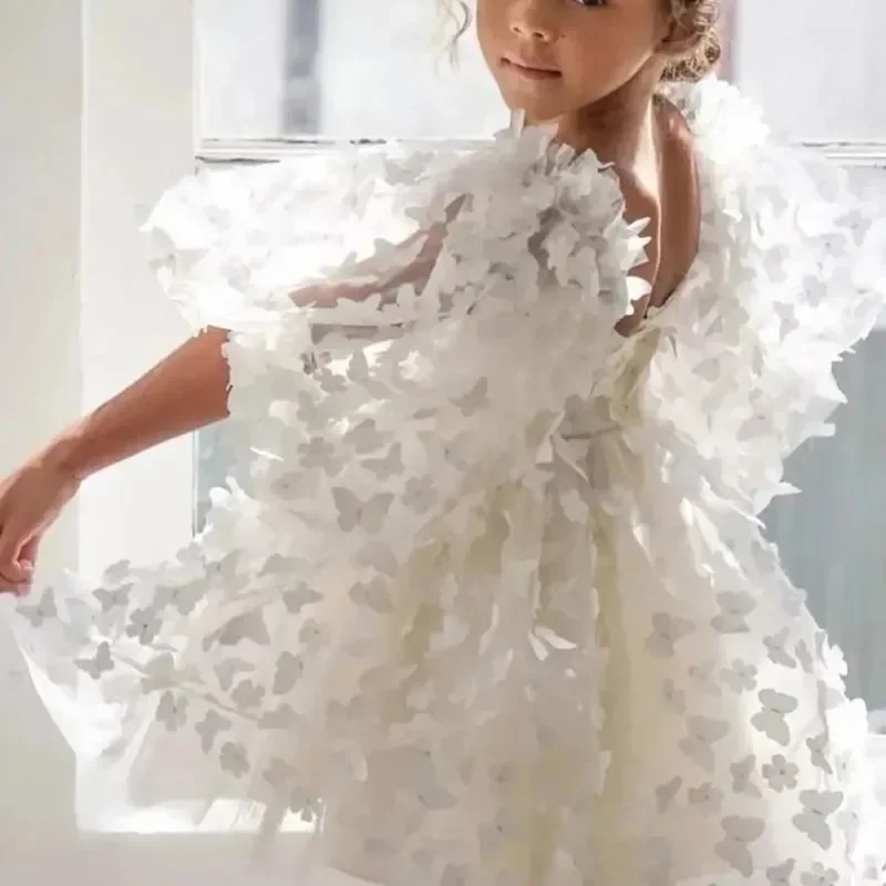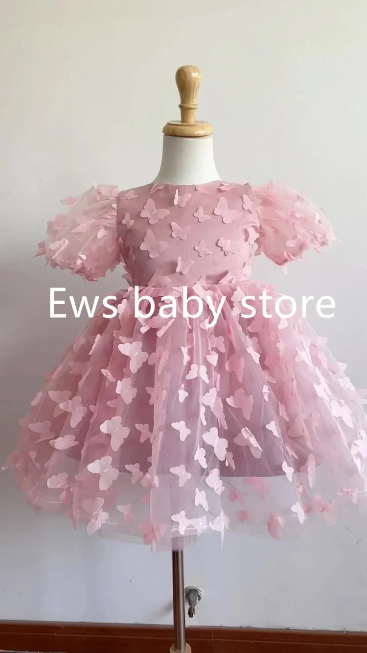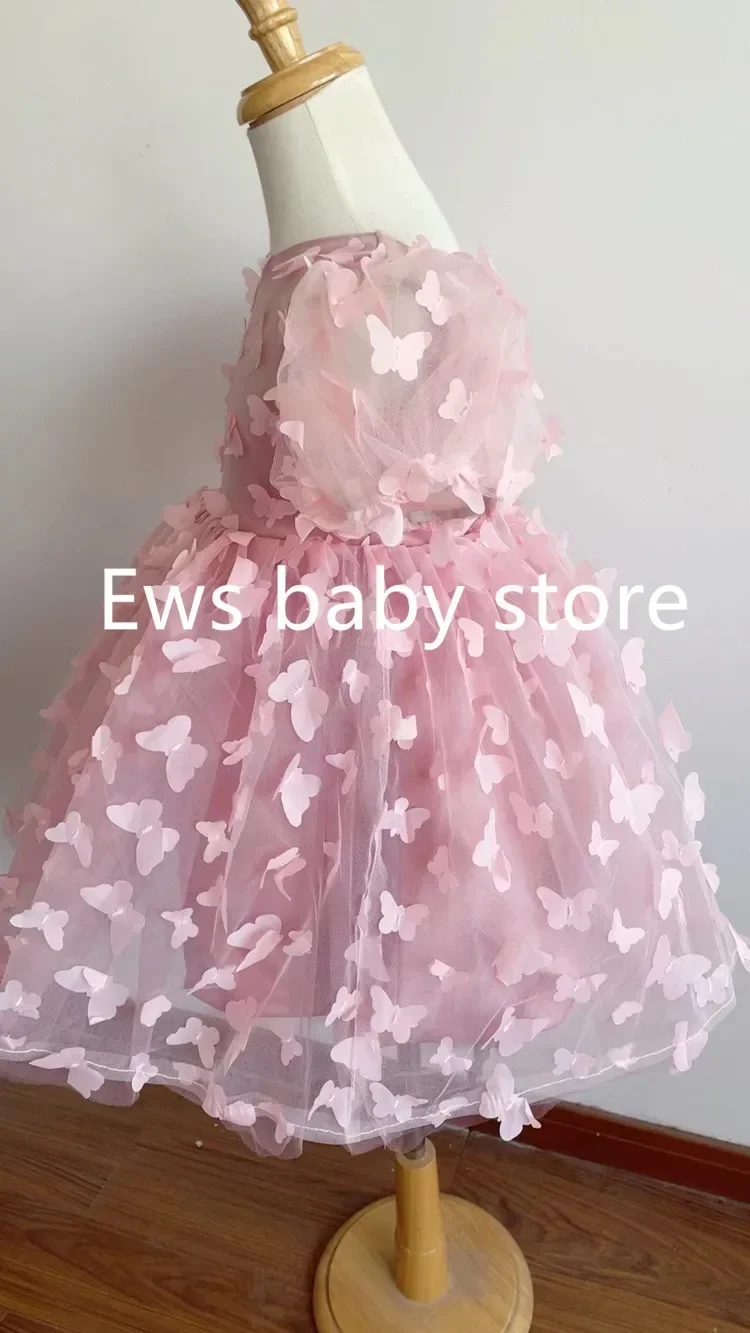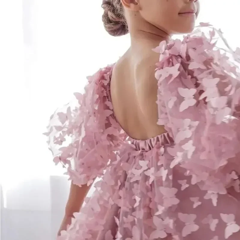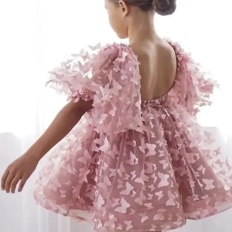 Fashion Baby Girl Dress Butterfly Puff Sleeve Child Tulle Princess Dress For Vestido Pageant Party Birthday
