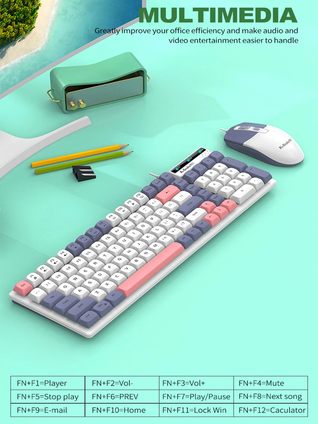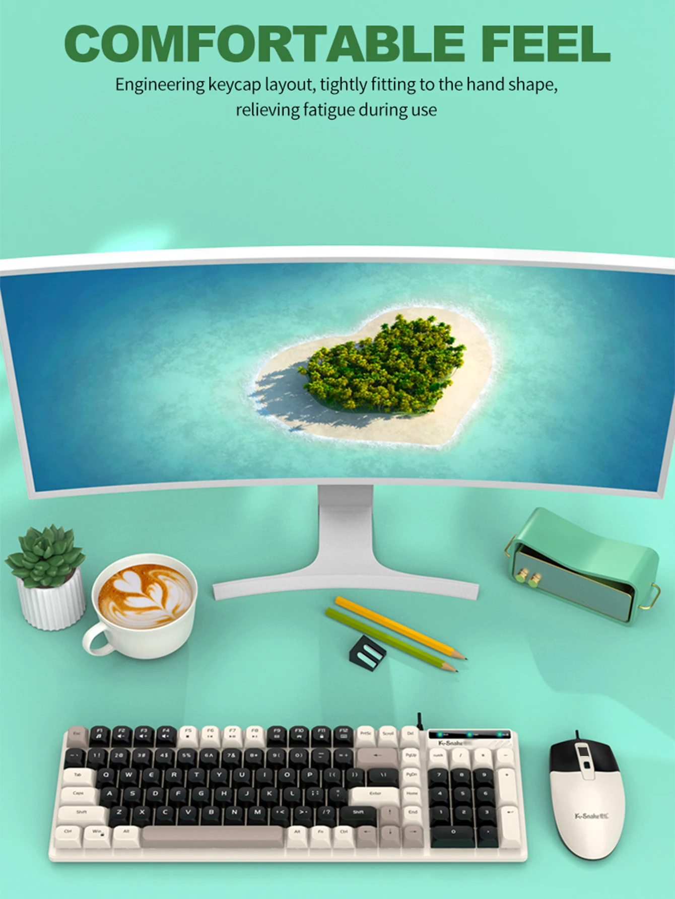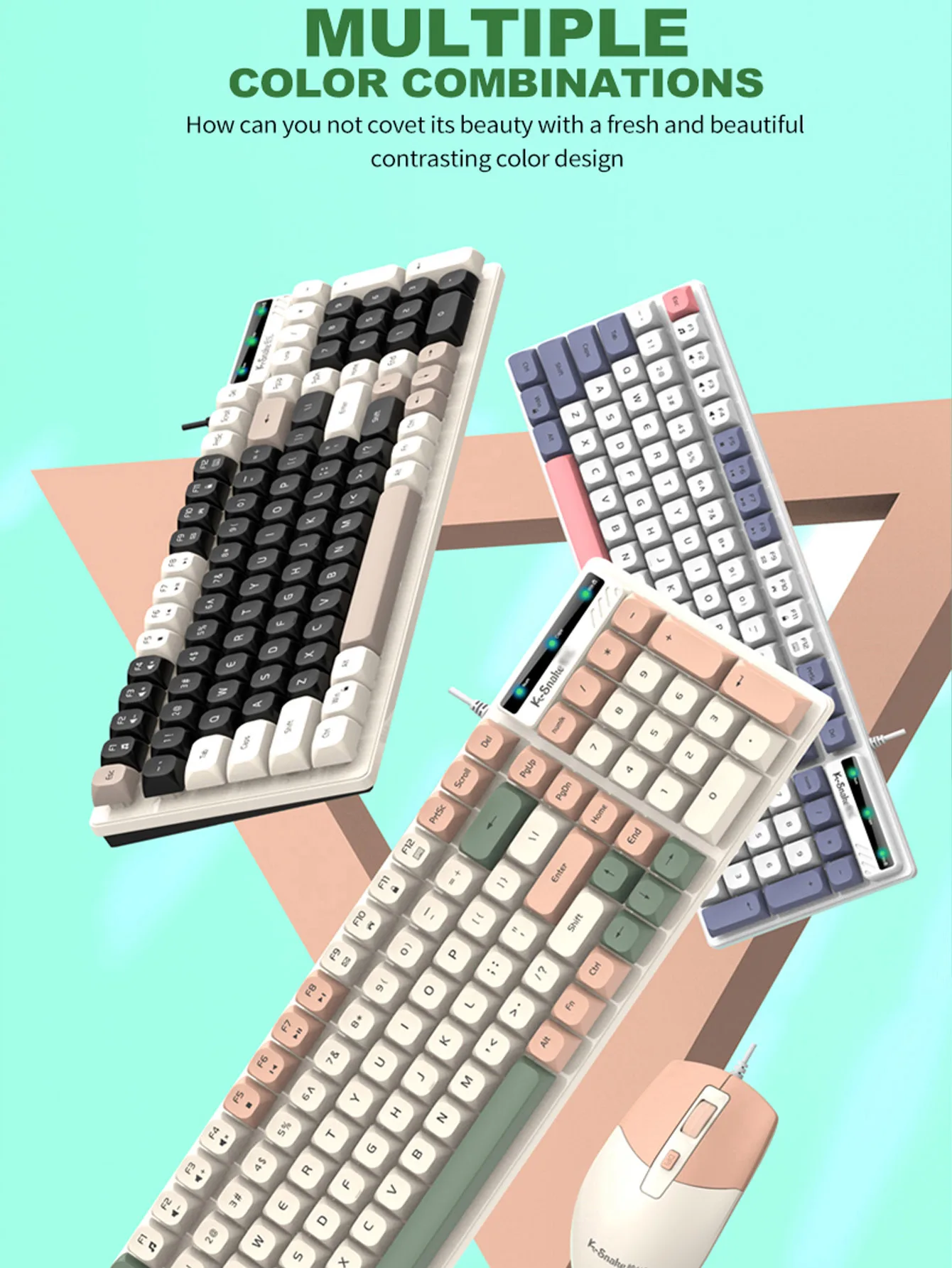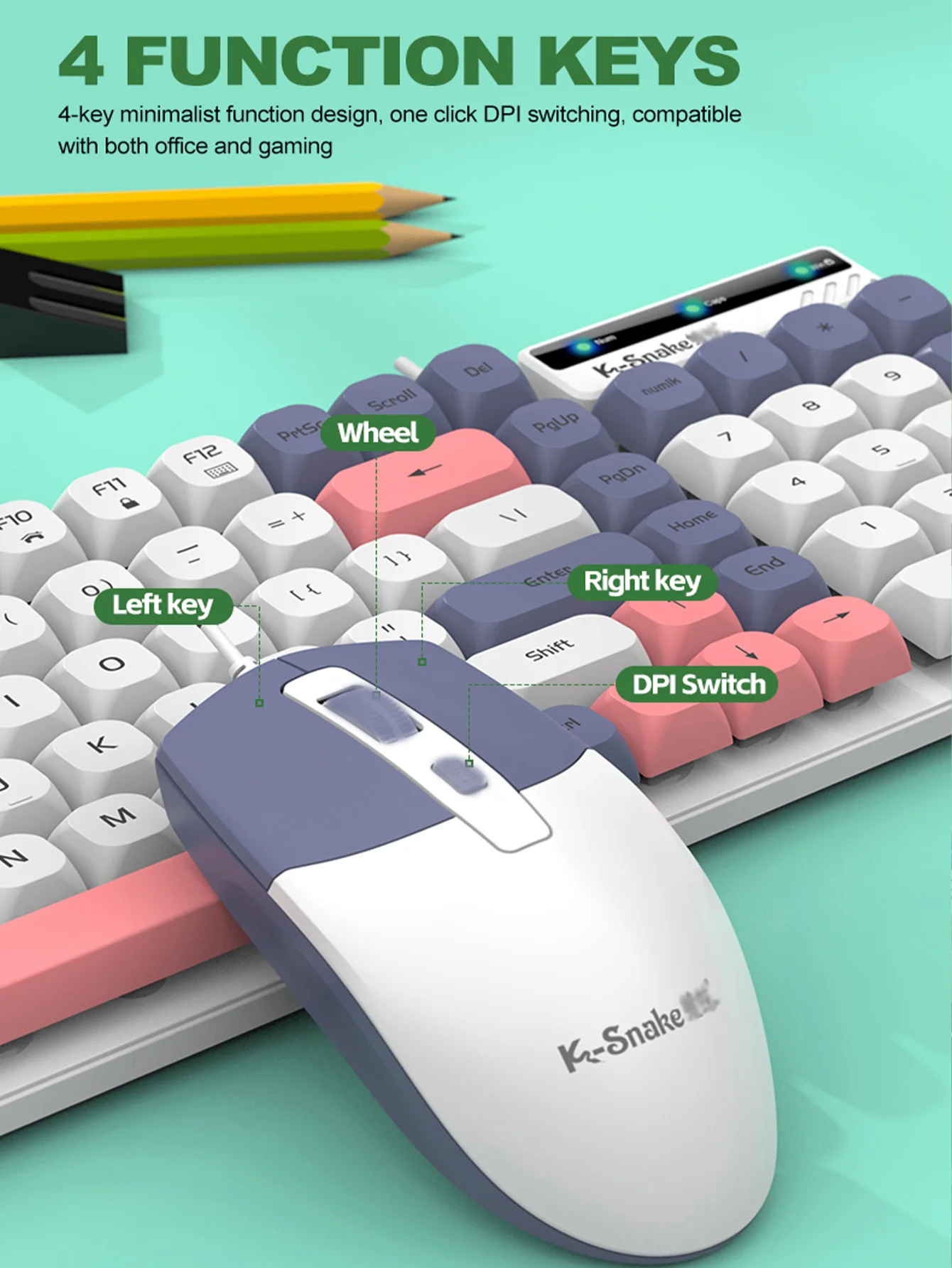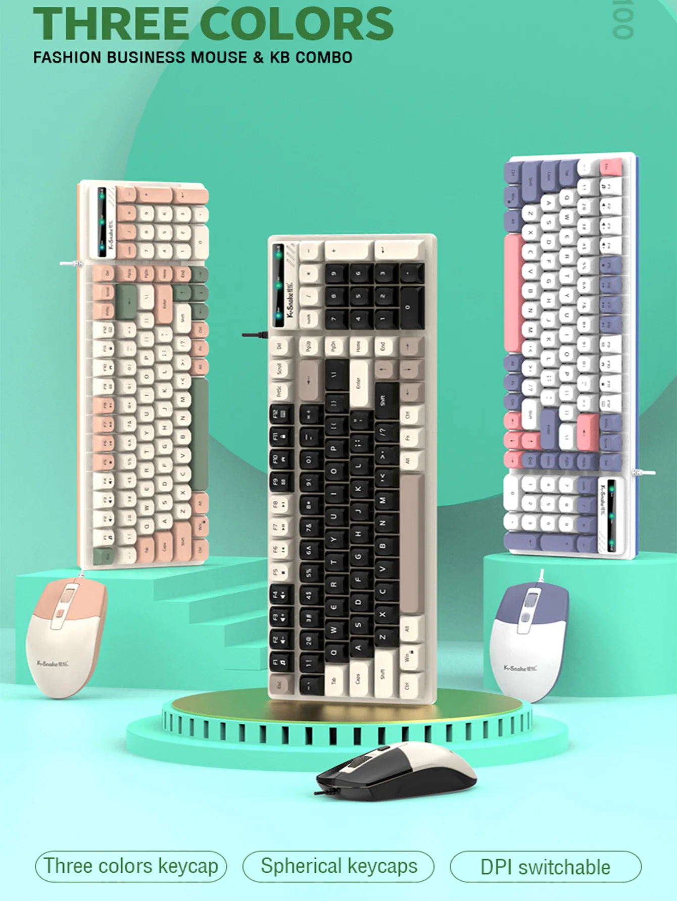Fashion business keyboard and mouse set, three-color suspension spherical key cap, office computer wired keyboard and mouse set
