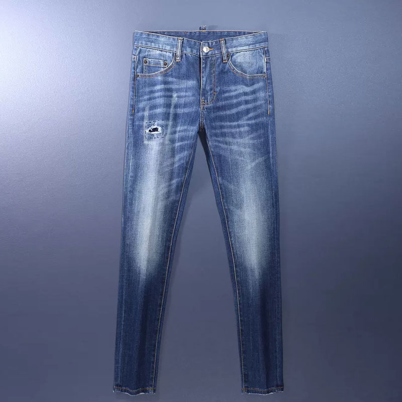 Fashion Designer Men Jeans High Quality Retro Washed Blue Stretch Slim Fit Ripped Jeans Men Brand Vintage Denim Pants Hombre