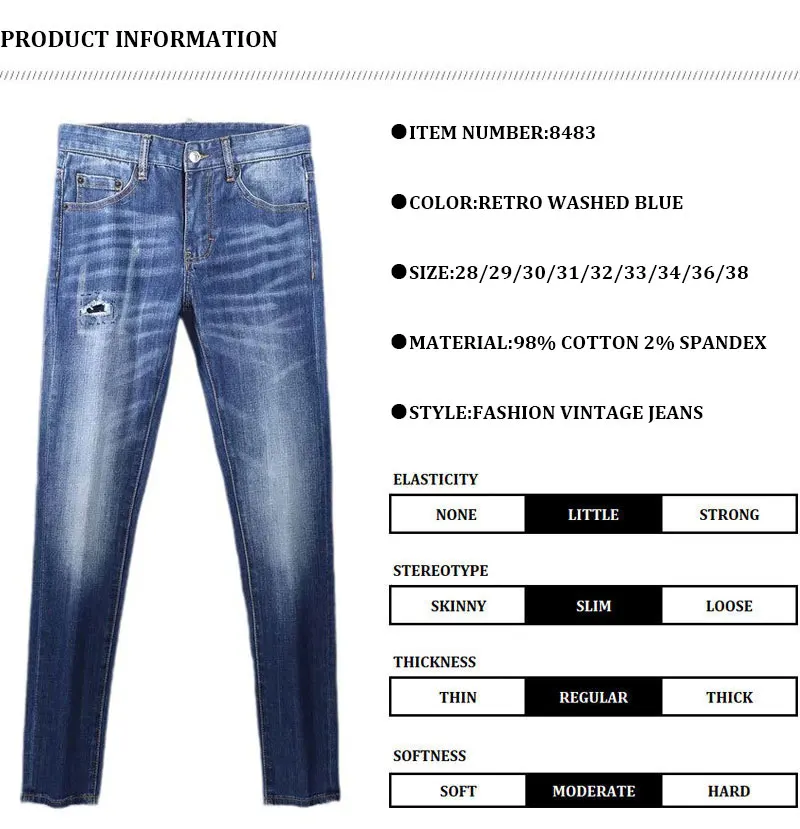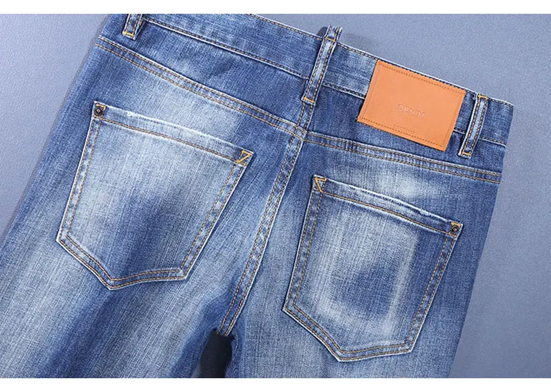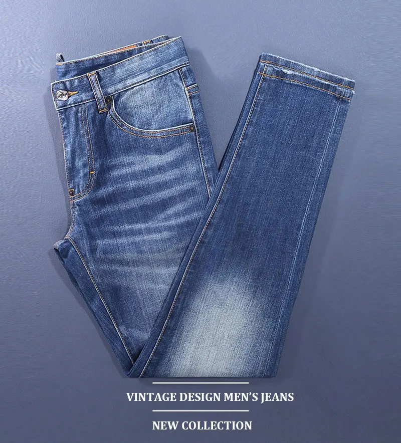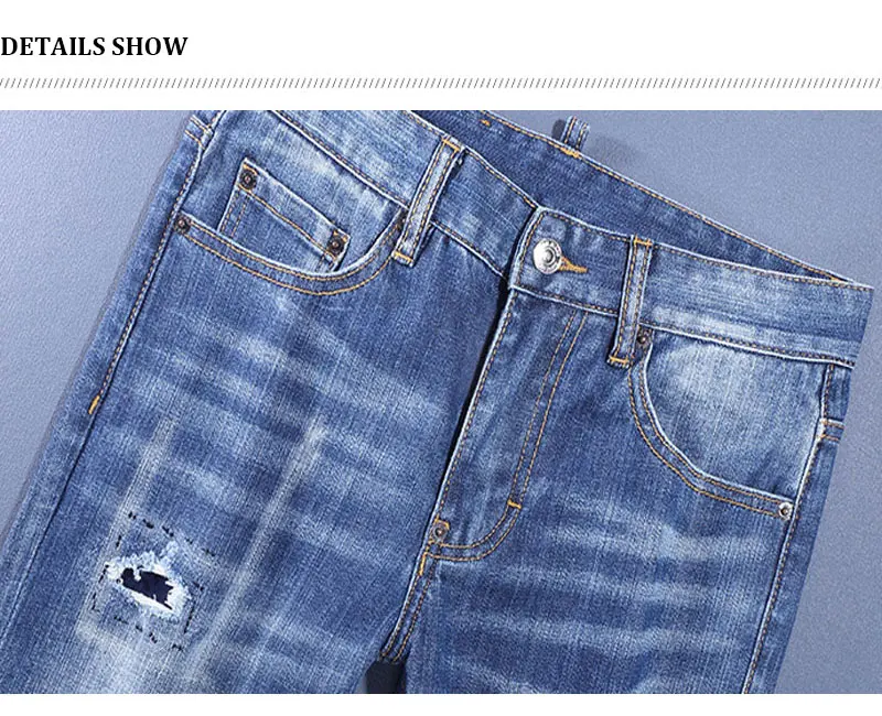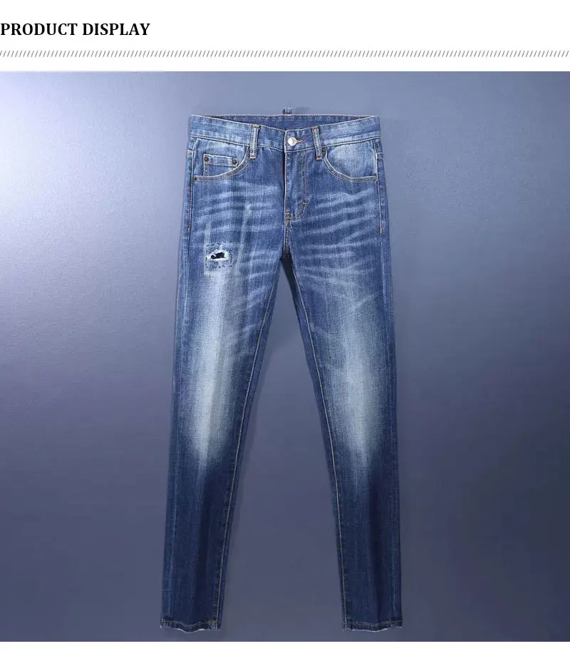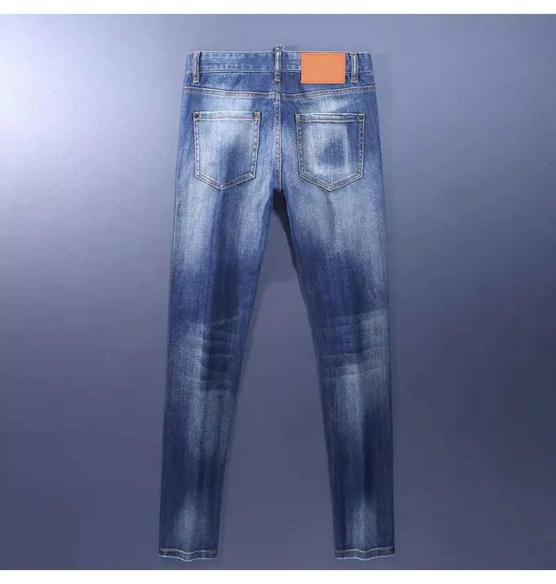 Fashion Designer Men Jeans High Quality Retro Washed Blue Stretch Slim Fit Ripped Jeans Men Brand Vintage Denim Pants Hombre