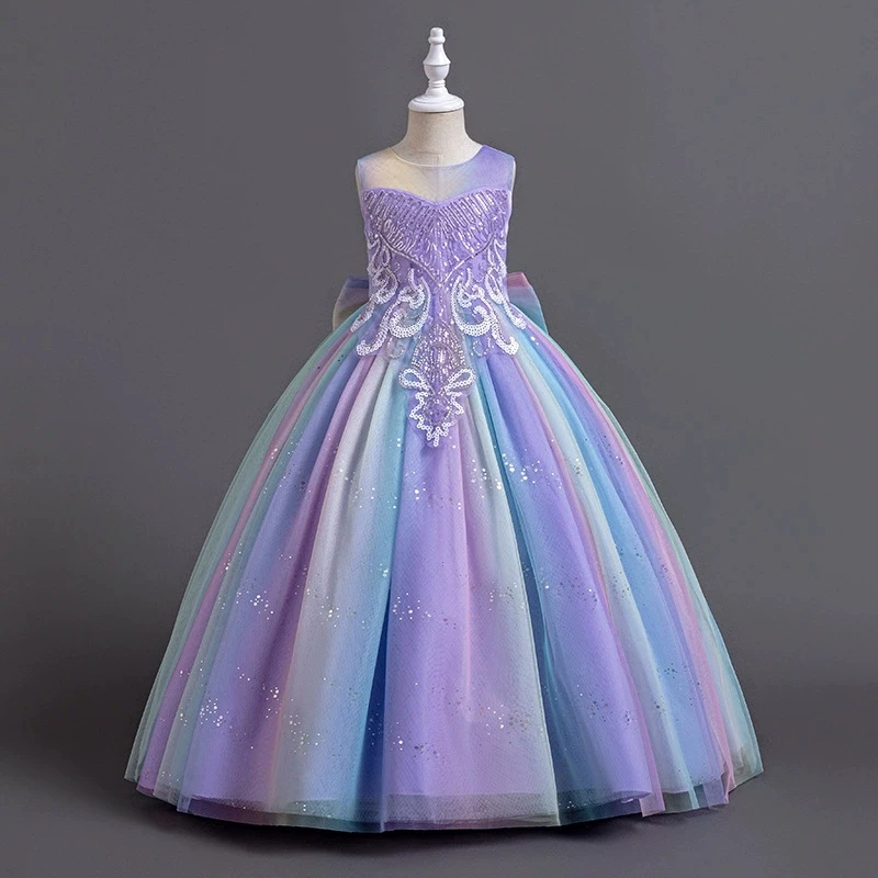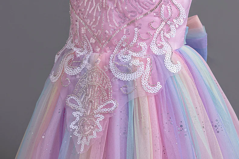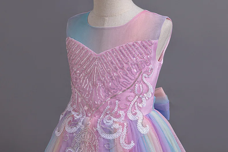 Fashion Girls Sequin Dress Mesh Lace Sleeveless Flower Girl Dresses for Weddings Summer Children Girls Party Dresses 3-13 Years